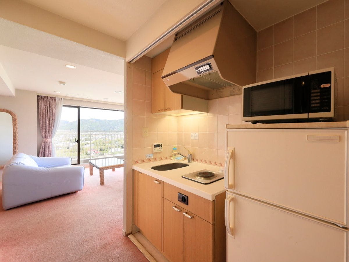 また、ホテルにはないキッチンを各客室に完備しておりますので自炊も可能です。