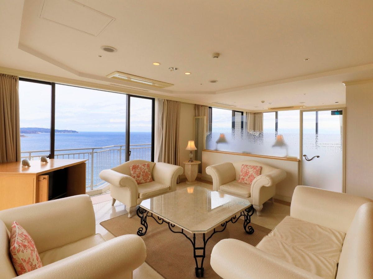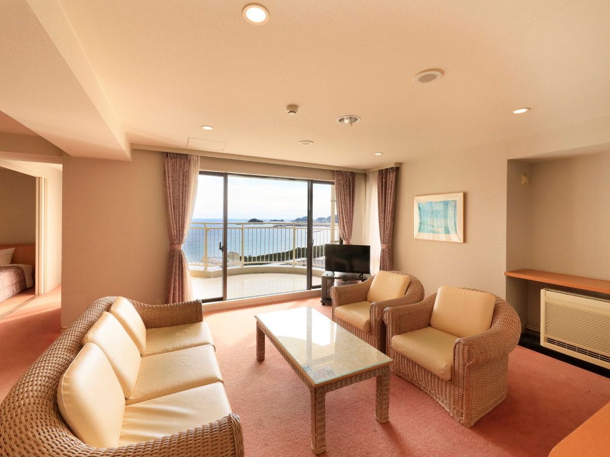 全室から太平洋の海原や鴨川の町並みを見下ろす広々とした客室です。