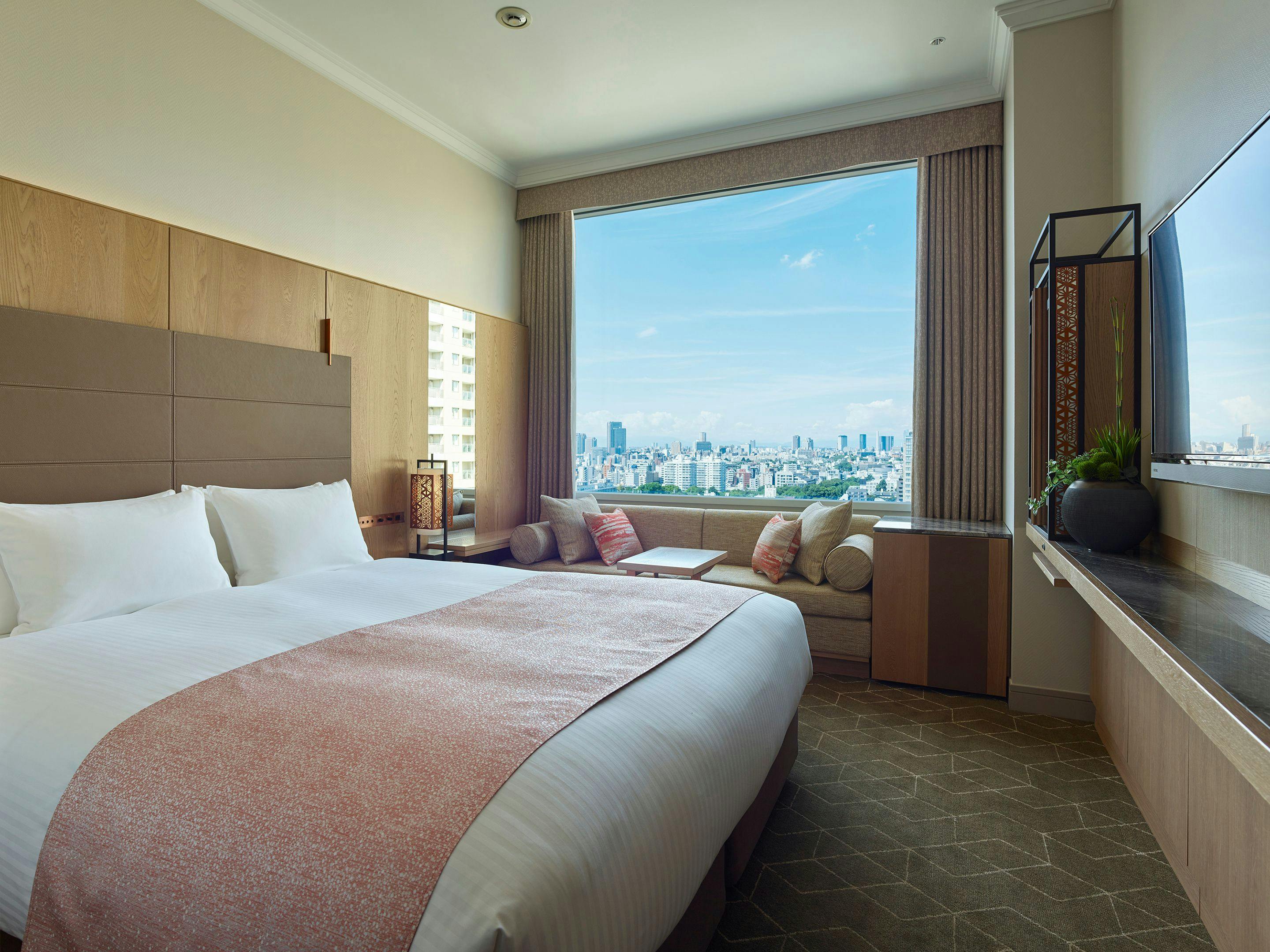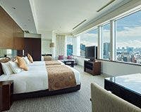 広々とした角部屋のラグジュアリー感あふれるお部屋です。各階の角部屋にお部屋を配し、2面の窓から溢れる外光が降り注ぎます。ルームサービスもお楽しみいただけるダイニングテーブルを配したお部屋で、都会の景色を楽しみながらゆったりとお寛ぎいただけます。