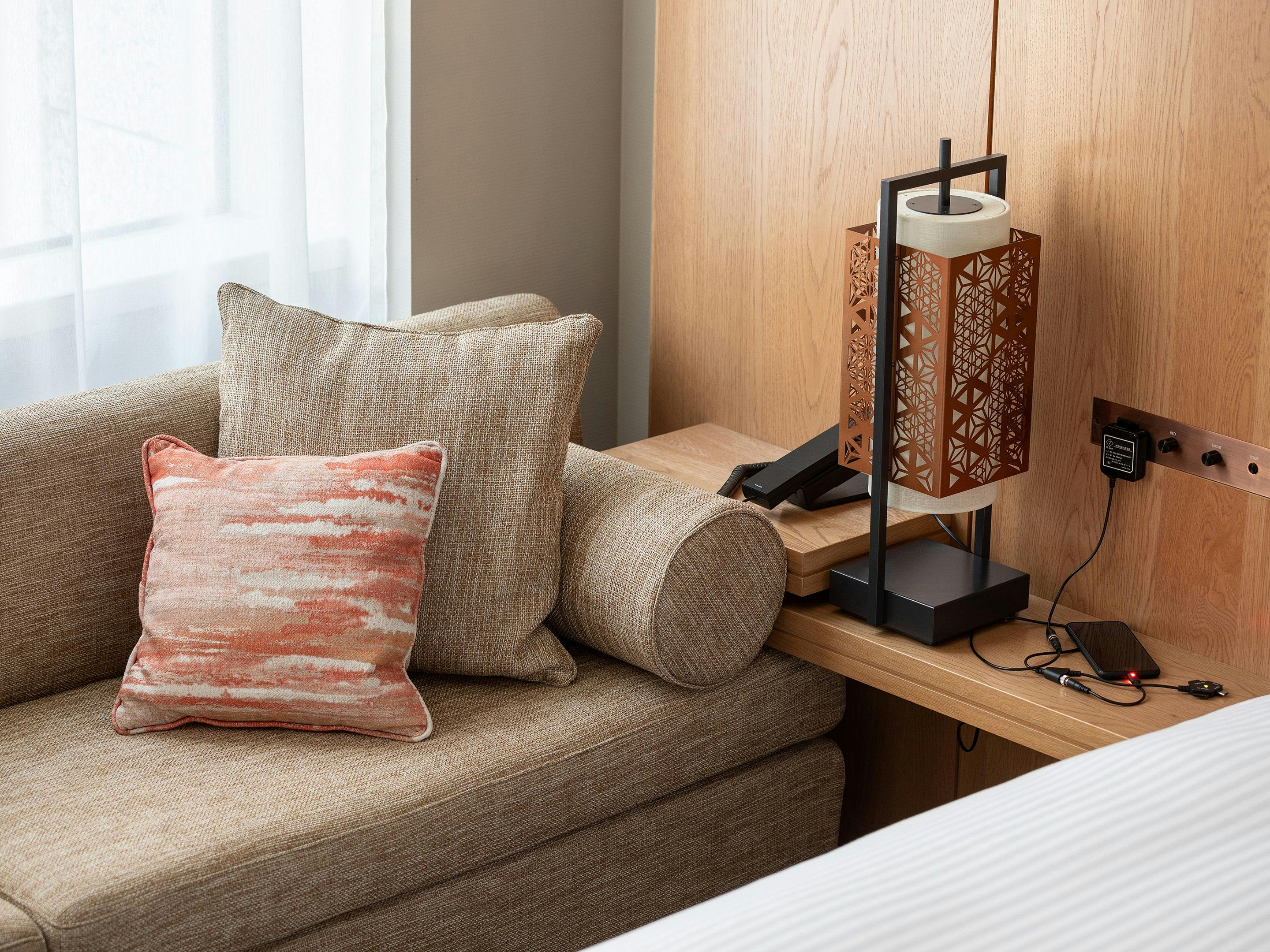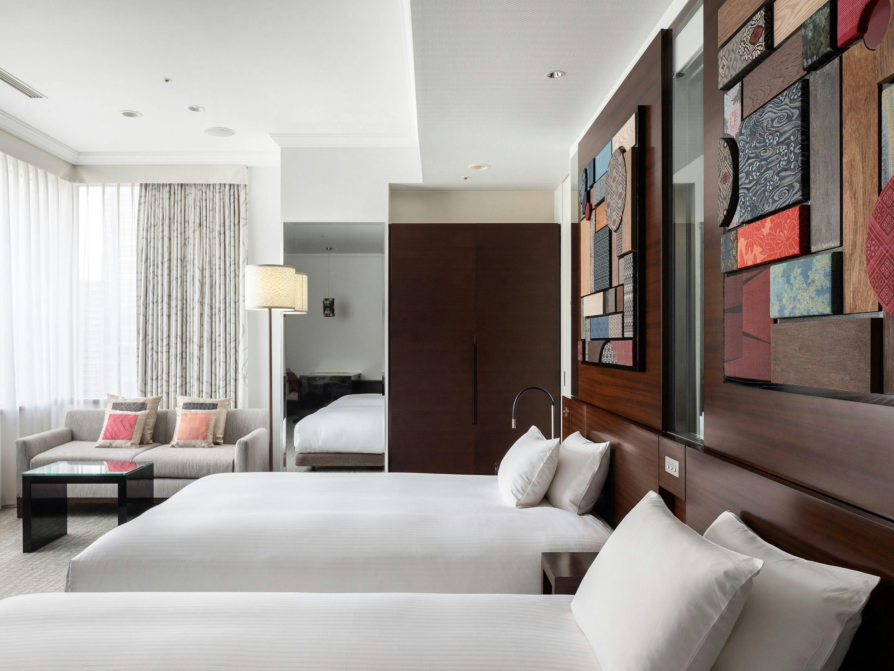 窓側にソファをご用意した機能的で使いやすいツインルーム。ゆとりあるバスルームでゆったりとお寛ぎください。