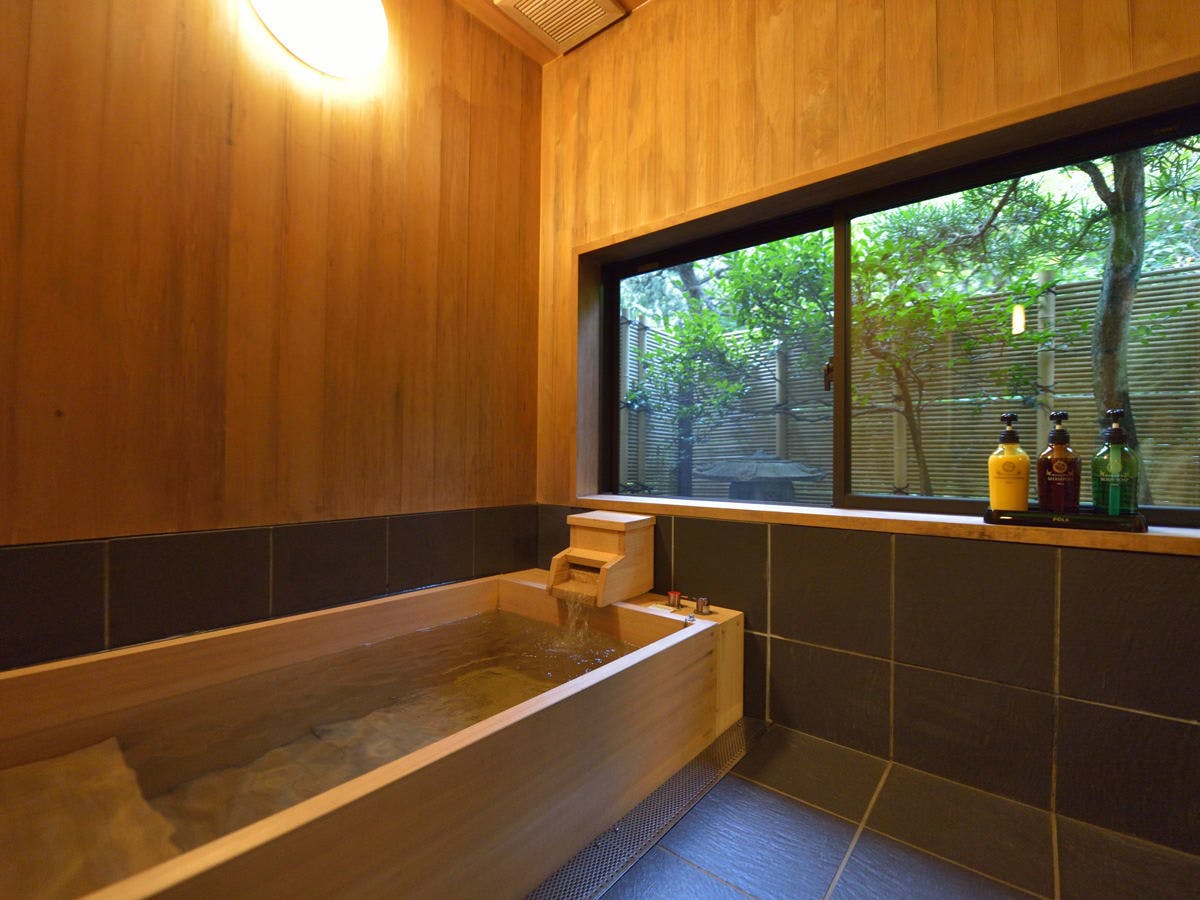 全て広々とした3間続きで源泉かけ流しの内風呂付き。