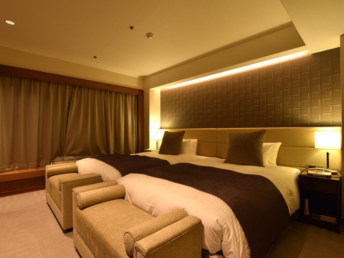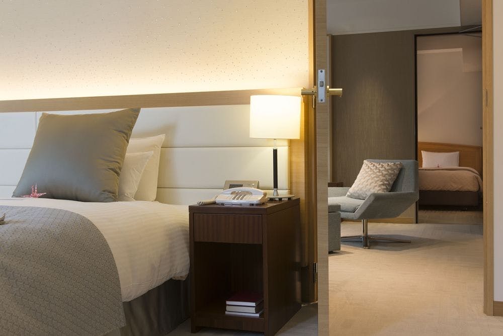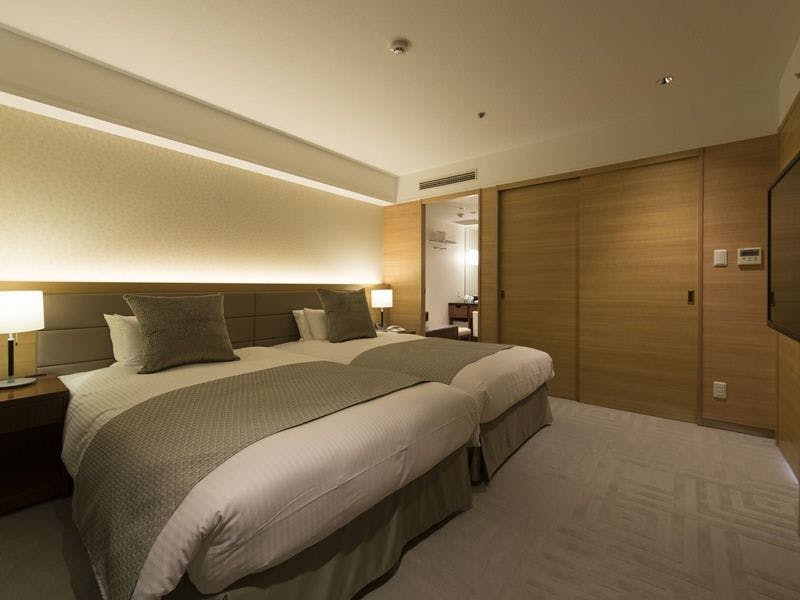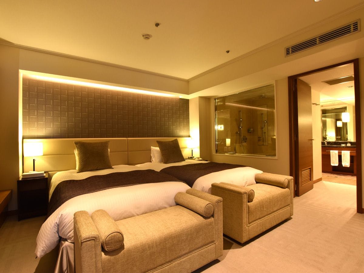 ジュニアスイート(ツイン)50.6平米と、コネクティングルーム(ツイン)25.3平米のご利用で、大人3~4名様でのご滞在が可能でございます。