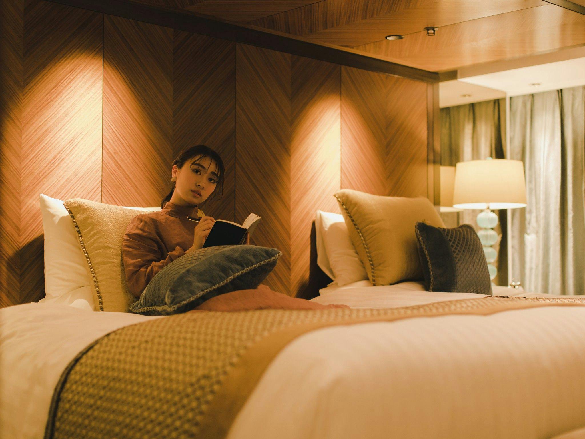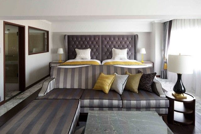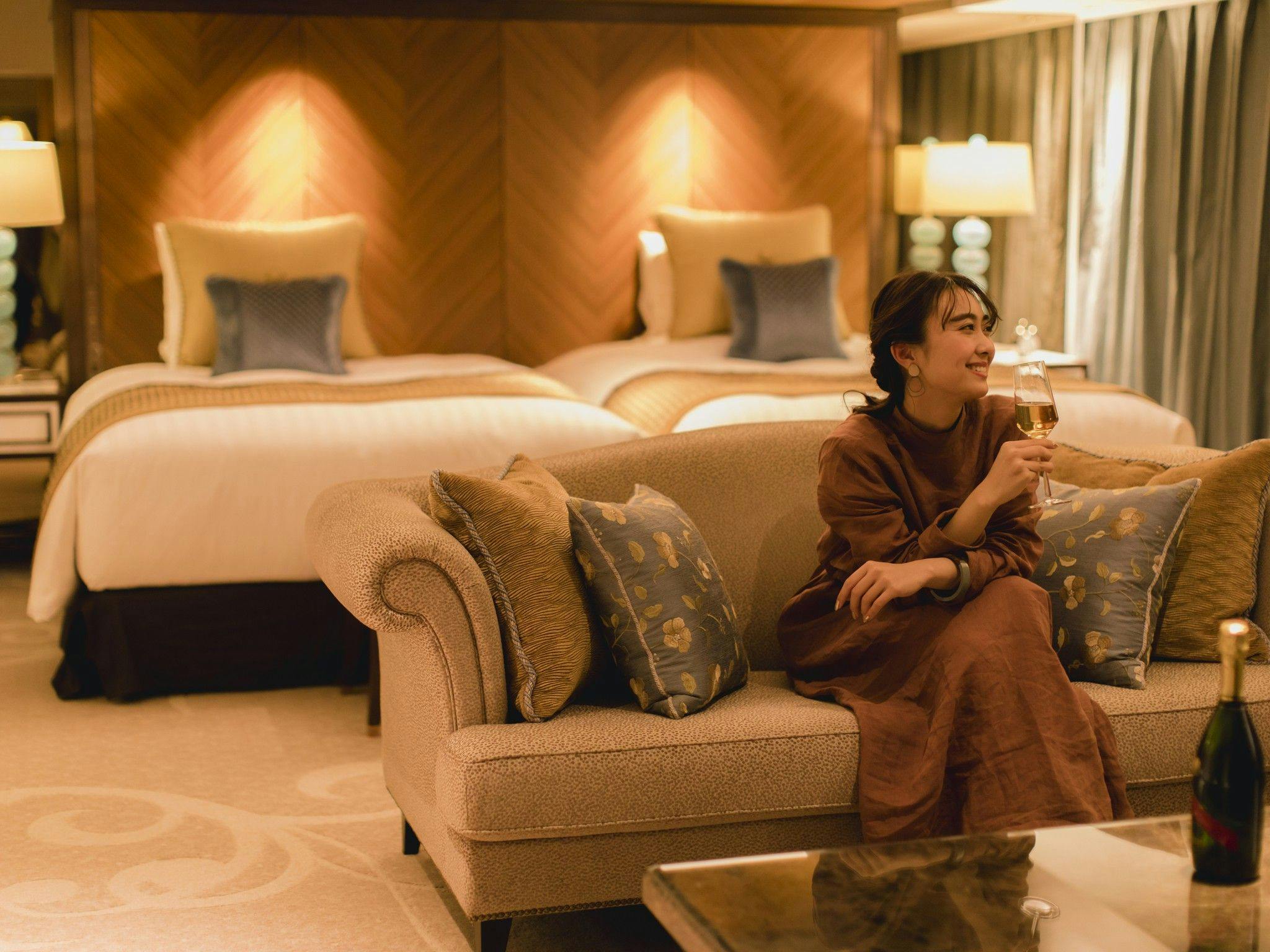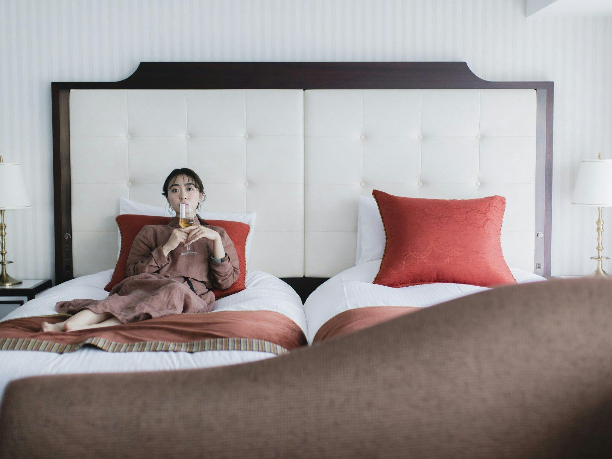幅2,300mmのスーパーキングサイズのベッドを設置し、ゆっくりとお休みいただける贅沢な客室。