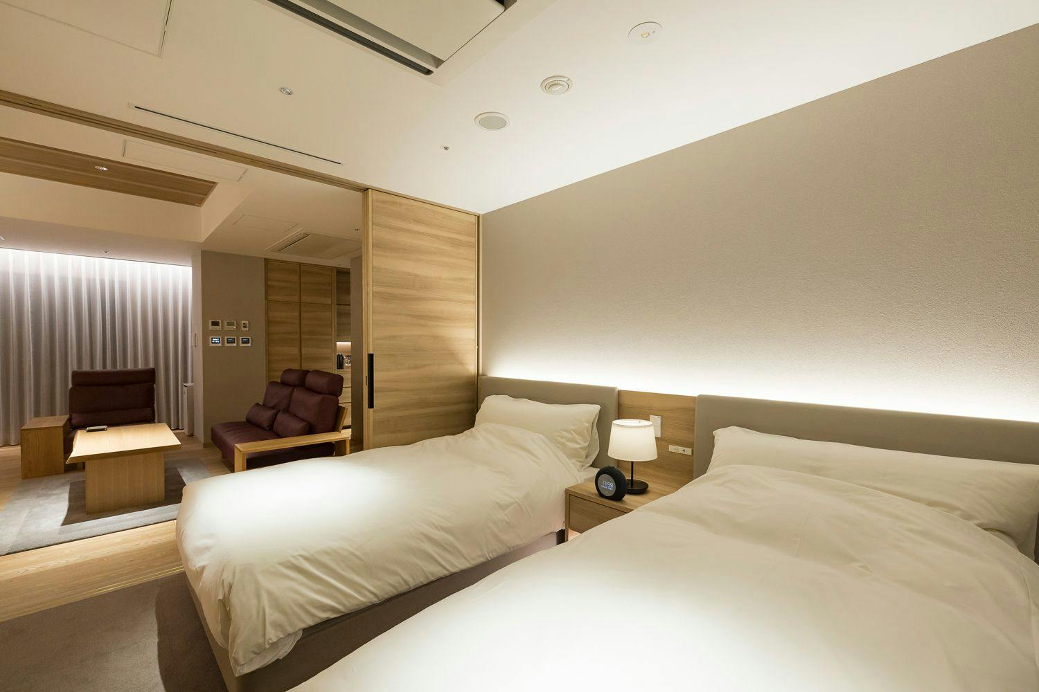・副室には、和の空間にシモンズ製ツインベッドをご用意しております。