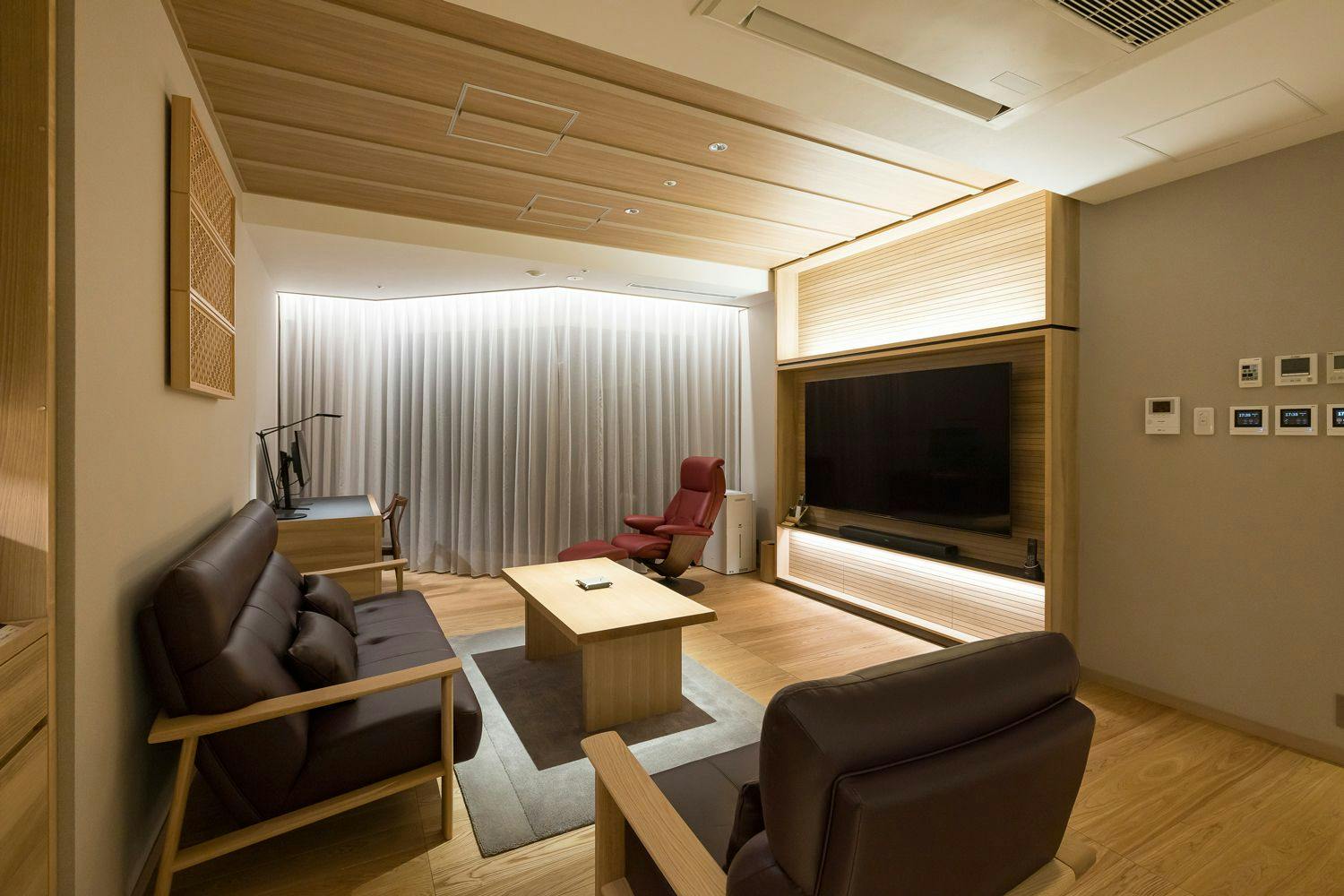 ・30平米超のリビングは、85型TV・高性能オーディオスピーカーシステムによる迫力あるシアタールー