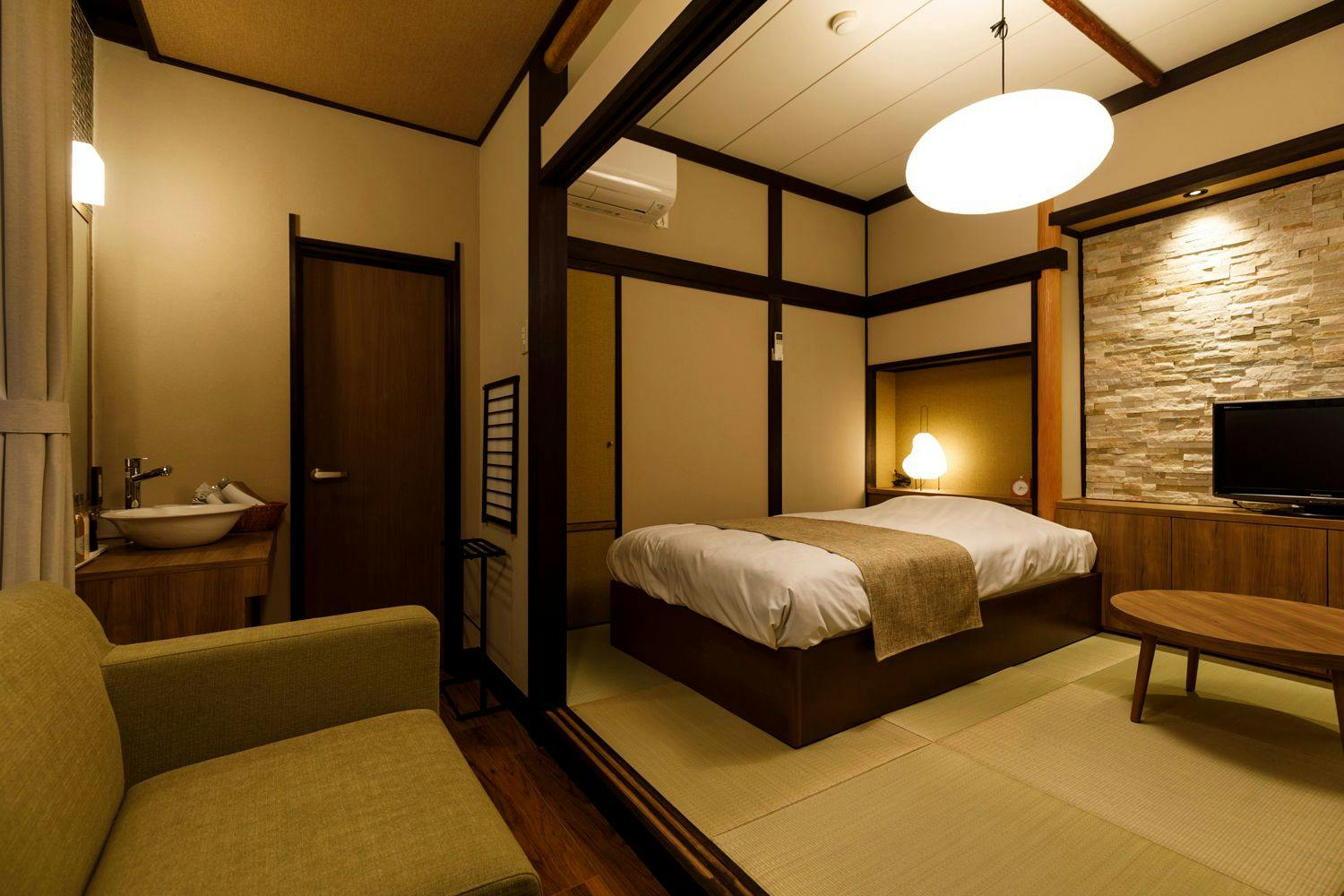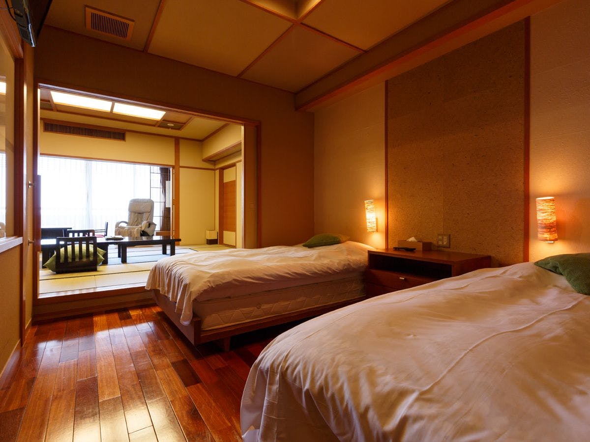 和室12.5畳+独立ツインベッドルーム、露天風呂付