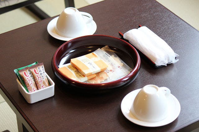 山水閣新和洋室 お茶とお茶菓子