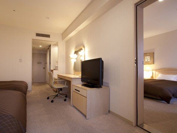 □喫煙可能 (1部屋あたりベッド幅120cm×2台/※内扉で行き来可能)■Wi-Fi&有線LAN完備(無料)■個別空調導入■加湿機能付空気清浄機完備■シモンズ社製ベッド採用■32型液晶テレビ■ベッドサイドにコンセント完備■マイナスイオンドライヤー完備■ルーム消臭剤完備■VODシステム(※有料1,000円)