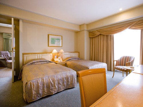 □ツインタイプ(ベッド幅120cm×2台/11階)■Wi-Fi&有線LAN完備(無料)■個別空調導入■加湿機能付空気清浄機完備■シモンズ社製ベッド採用■32型液晶テレビ■ベッドサイドにコンセント完備■マイナスイオンドライヤー完備■ルーム消臭剤完備■VODシステム(※有料1,000円)