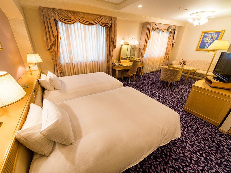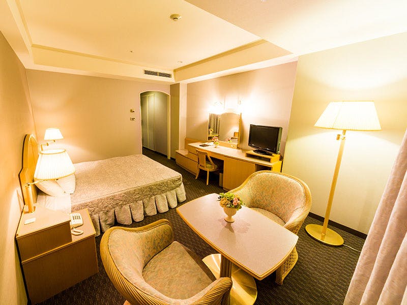 ホテル客室最上階の12階で広さ100.8平米のスイートルーム。隣接の高知城天守閣が一望出来ます。