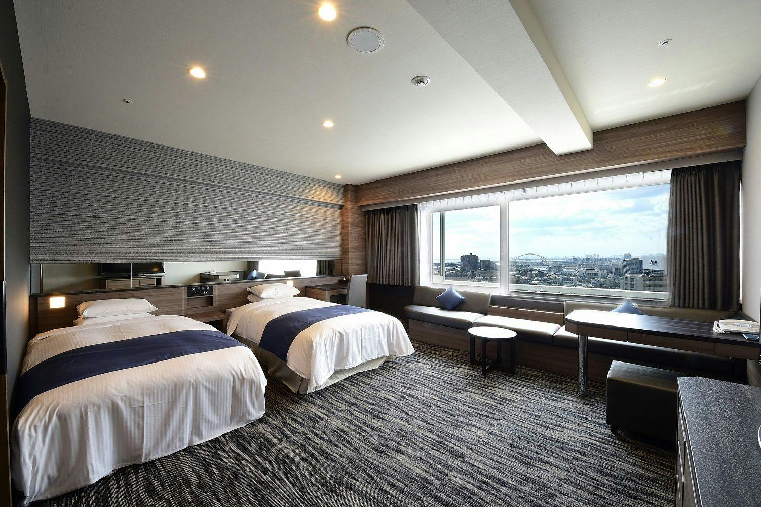 シックで落ち着いたインテリアで統一された「エグゼクティブハリウッドツイン」神戸・六甲山の美しい眺望が目の前に広がります。