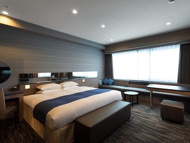 キングサイズのゆったりとしたベッドが特徴の「エグゼクティブデラックスダブル」広々とした空間と眺望がお楽しみいただけます。