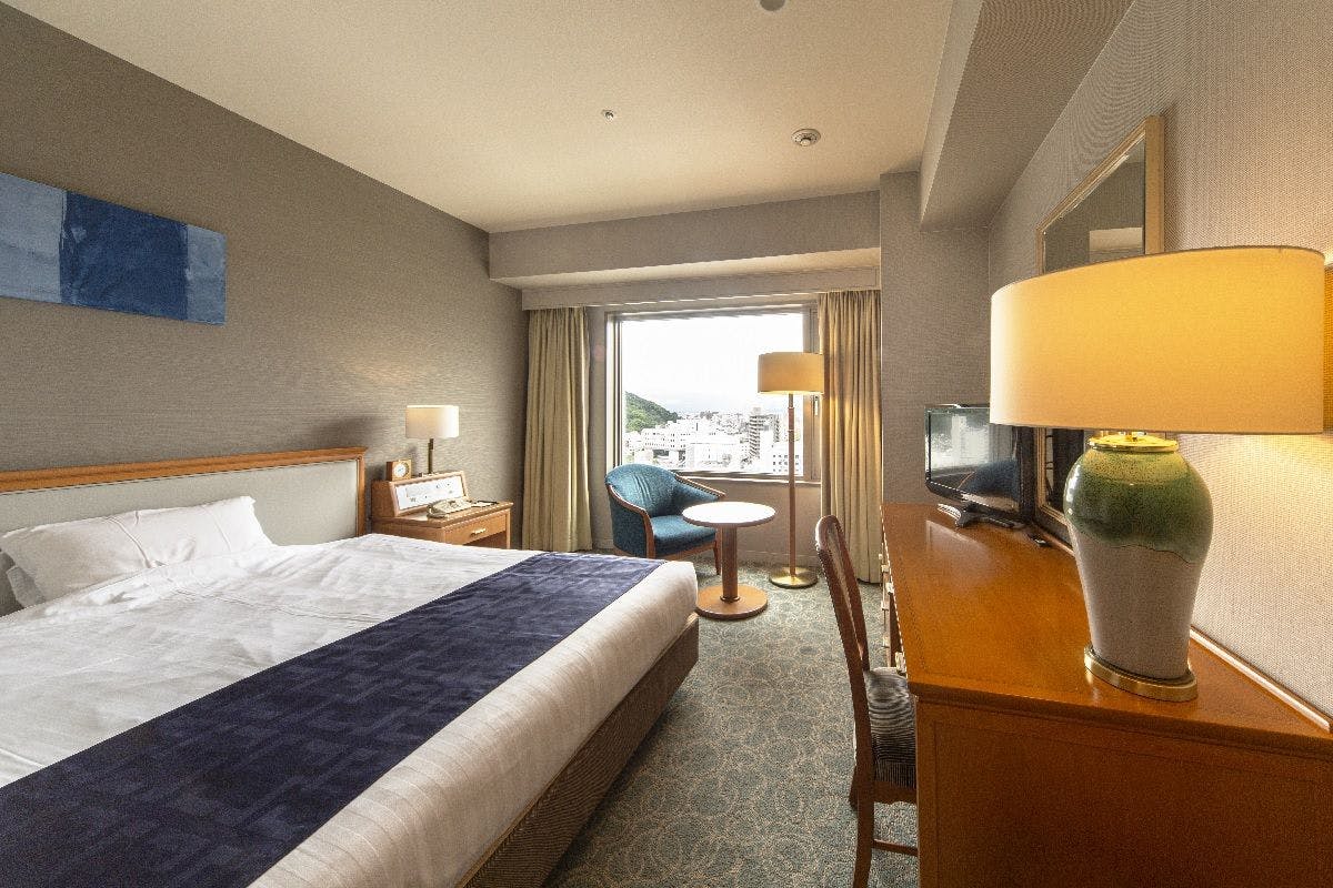 お部屋は13階~15階■ベッドはセミダブルベット(140cm)□お部屋は角部屋でコーナーツインなのでとても静か 47平米と十分な広さを確保した居住性の高い客室。■お風呂からは夜景が綺麗に見えます。□部屋からは眉山が望めます。<全室共通>■インターネットつなぎ放題!LAN接続・Wi-Fi対応で無料□加湿空気清浄機常設■ズボンプレッサー常設□消臭スプレー常設■客室TV内にてミラーリング・キャストなどの機能搭載□YouTube・AbemaTVなど視聴可能