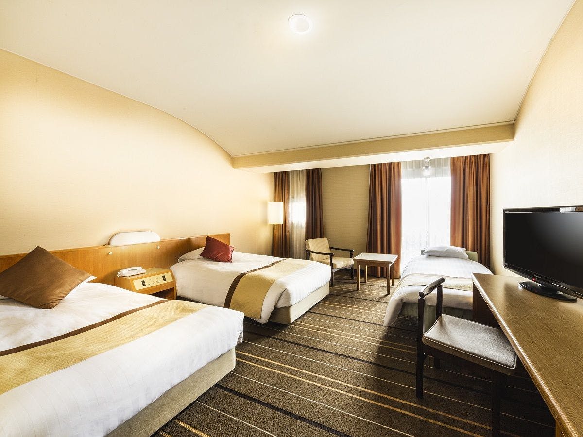 【客室】(25.4平米)・ベッドサイズ 幅160cm×長さ195cm 1台(3名様利用時:エキストラベッド1台追加)・ユニットバス(ウォシュレット完備)・冷蔵庫(中身は何も入っておりません)・空気清浄機完備・ベビーベッドの貸出しもございます。※要予約(1,210円/1泊)【インターネット接続】・Wi-Fi接続可能(無料)・全室高速インターネット接続可能(無料/LANケーブル式)(パソコンはご持参ください。)※添い寝の人数は、大人の人数と同数までとさせていただきます。