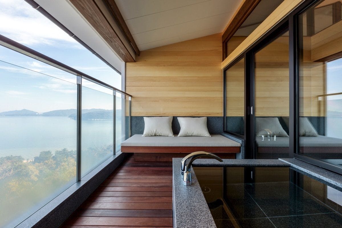 世界で最も美しい湾クラブに選ばれた宮津湾を望むお部屋です。各部屋とお風呂からも宮津湾と山々の景色の移り変わりをお楽しみいただけます。