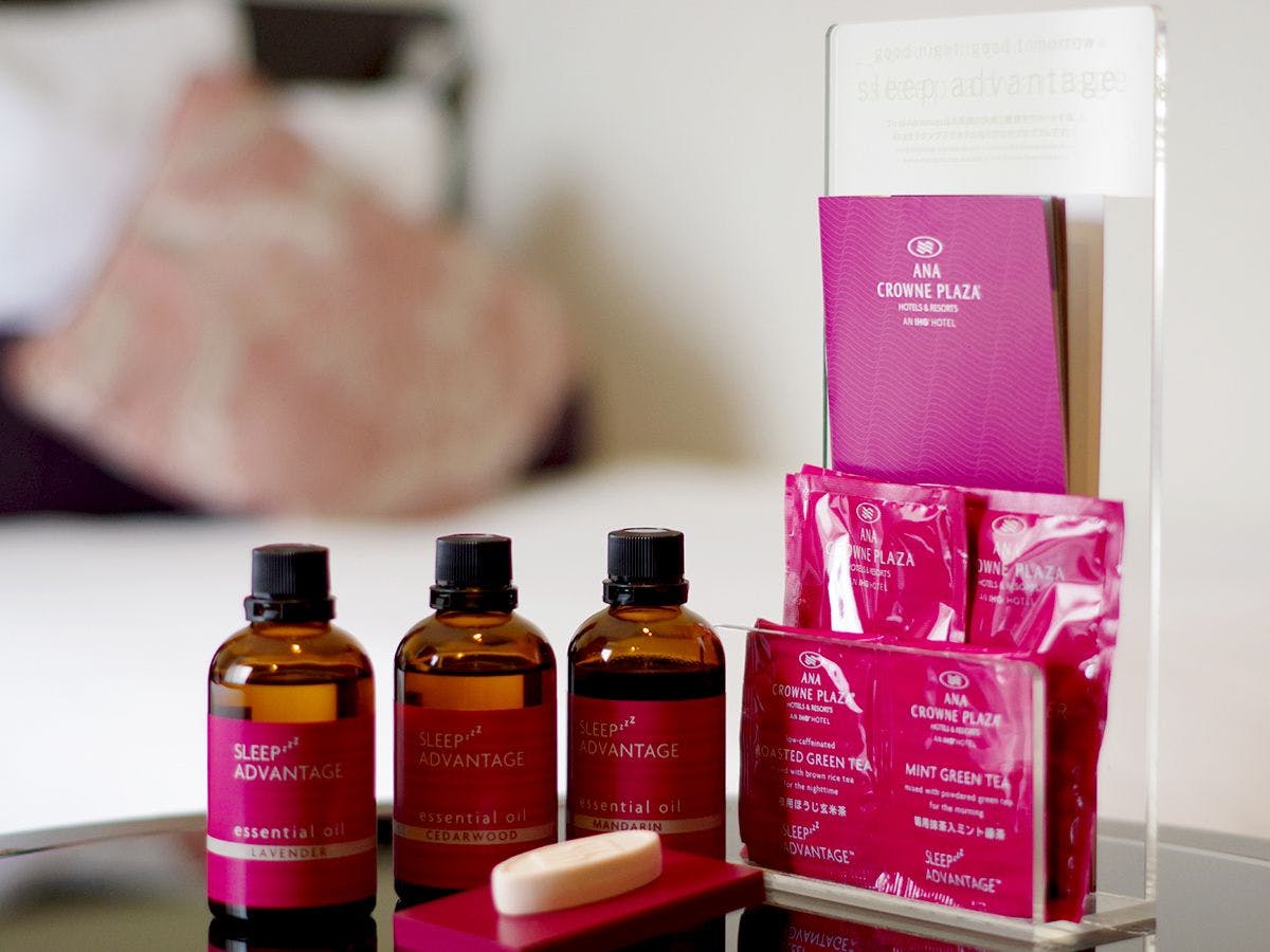 60平米のANAクラウンプラザホテル福岡で最も大きなスイートルームです。明るい色調で統一されたスタイリッシュな空間が広がる客室には、オリジナル快眠プログラムの「スリープアドバンテージ」をはじめ、お好みで選べる5種類の枕や香りを楽しむアロマ、加湿器などをご用意しております。
