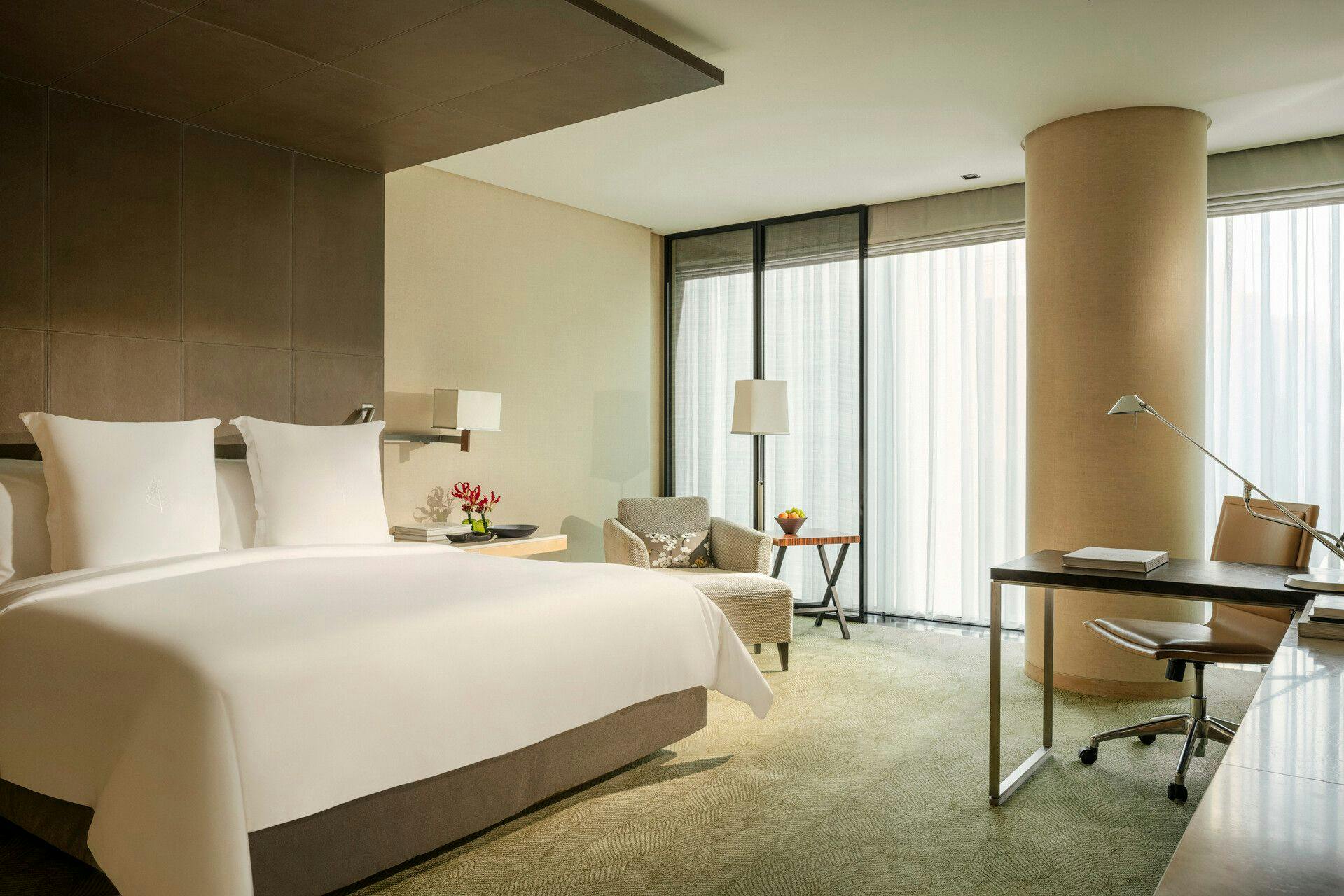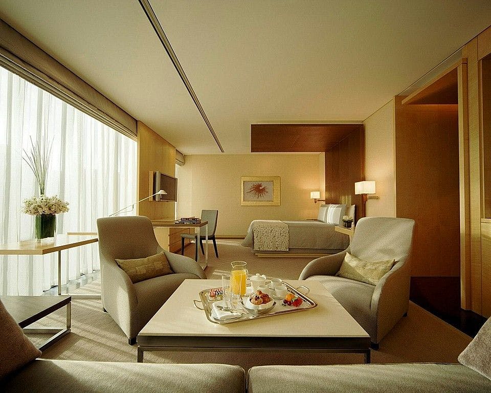 フォーシーズンズエグゼクティブスイートは、壁一面の窓から丸の内らしい眺めをお楽しみいただける、開放的な設計です。リビングエリアとベッドルームが独立しており、カジュアルなミーティングやプライベートな接待にもご利用いただけます。またリビング脇にはゲスト用のパウダールームを備えております。