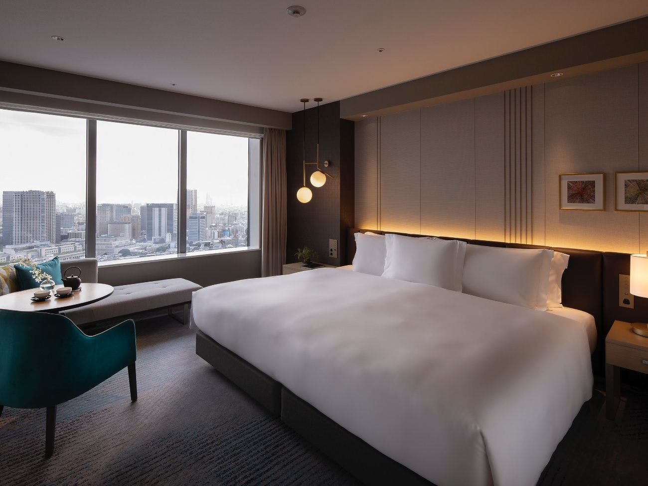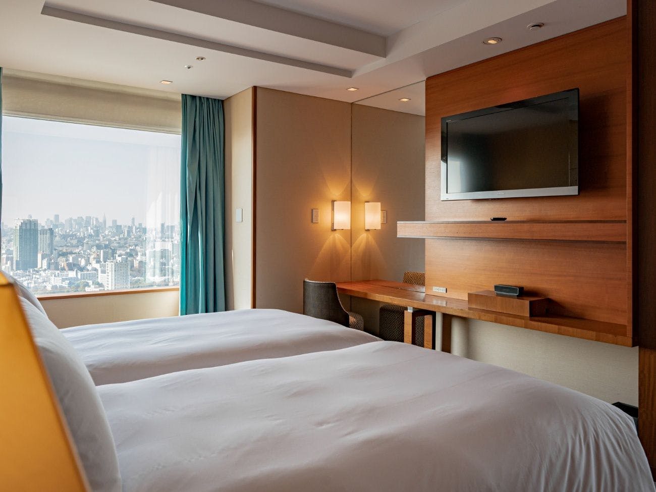 ゆったりと心地よい時間を過ごせるクラシックルーム。Wi-Fiやテレビなど最新機器を完備し、天井高3mの開放的な空間が快適なホテルステイをお約束します。上質な眠りへと誘うオリジナル仕様のベッドで、ぐっすりとお休みください。大都会のスカイビューを見渡しながら、東京でのご滞在を心ゆくまで満喫していただけます。