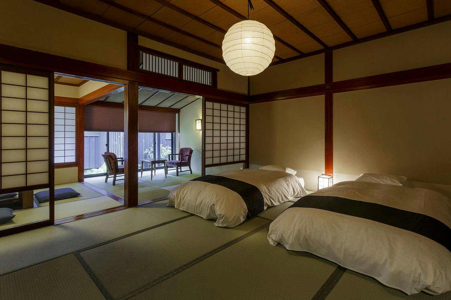 寝具はハリウッドツインでご用意。またプライベートキッチンが併設されており、ご滞在中料理も楽しみながらお過ごしいただけます。
