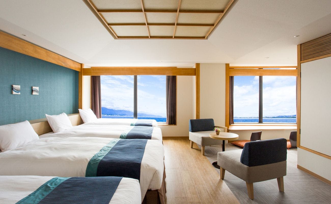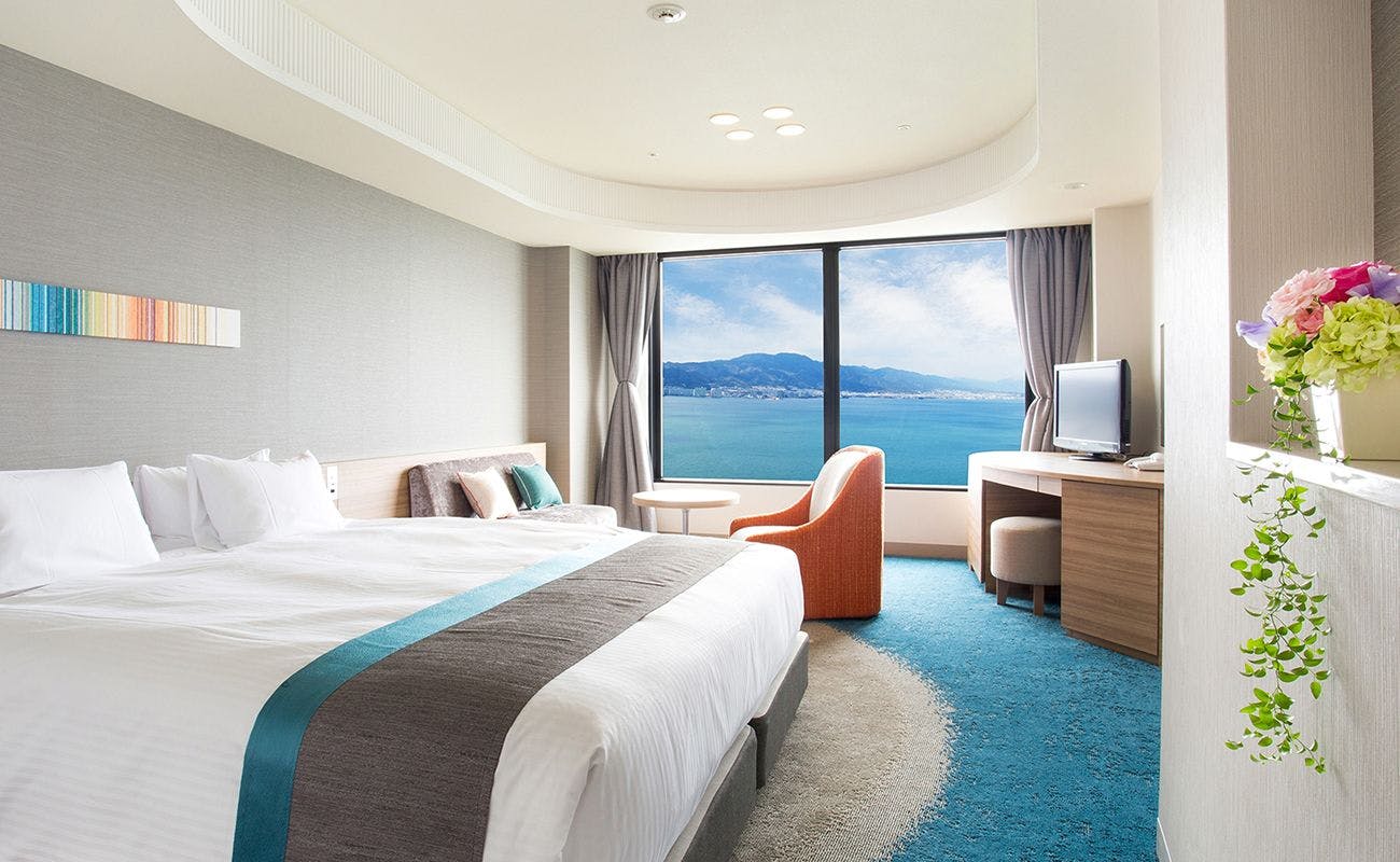 客室は全て琵琶湖に面し、四季折々の風景を眺めながらゆっくりとご滞在いただけます。JRなら京都駅から大津駅まで約10分と滋賀・京都の観光拠点に最適です。