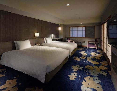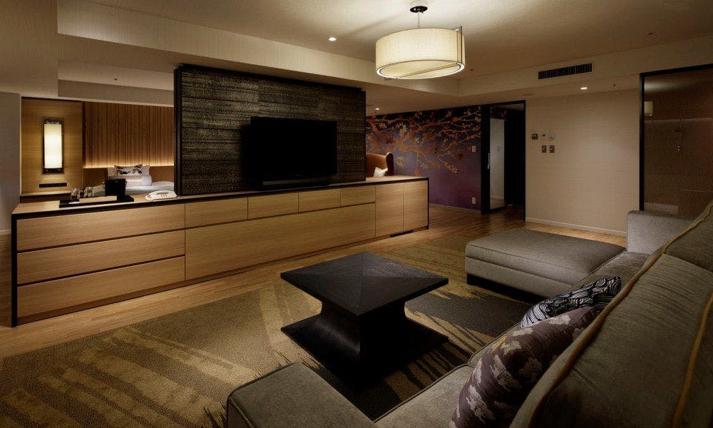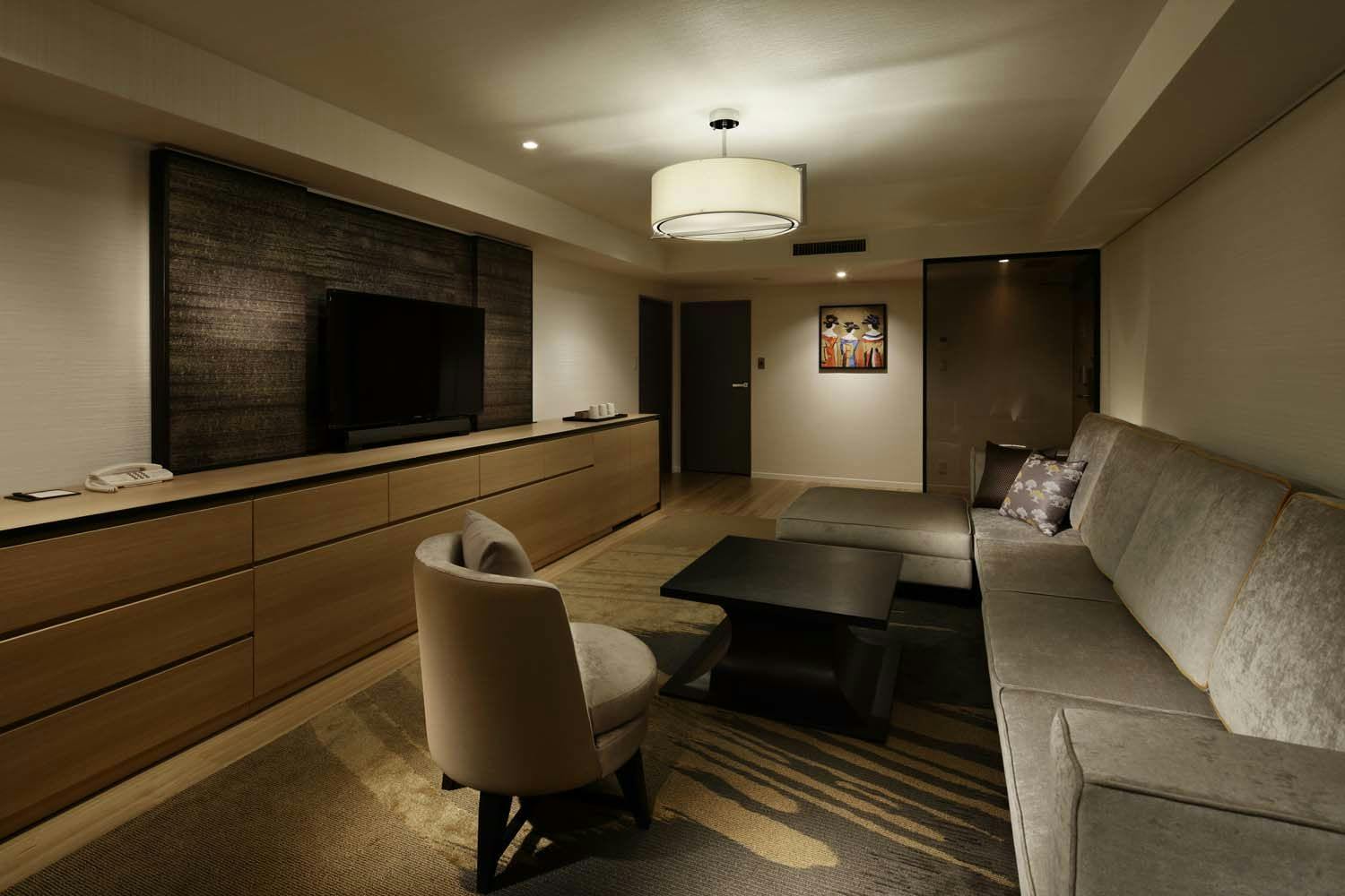 36・37階にございます。伝統と新しさを感じさせる和モダンの空間に、やわらかな光彩がまとうスイートルーム。広々としたお部屋をゆったりとご利用いただけます。