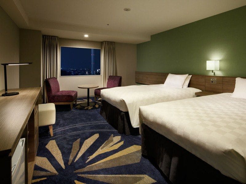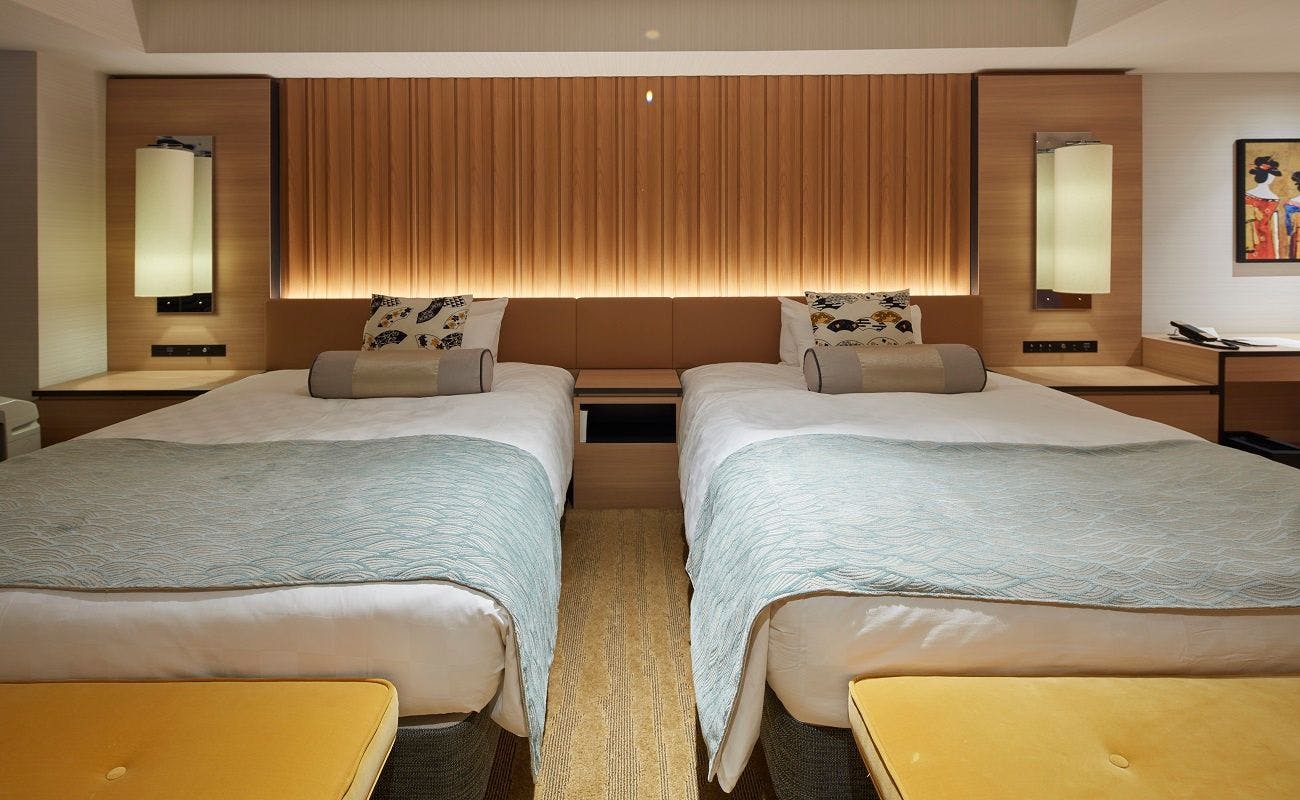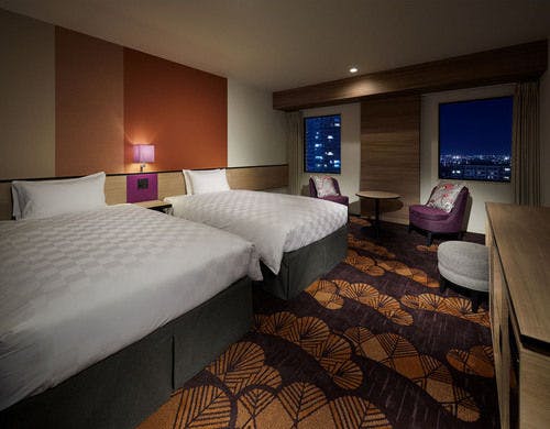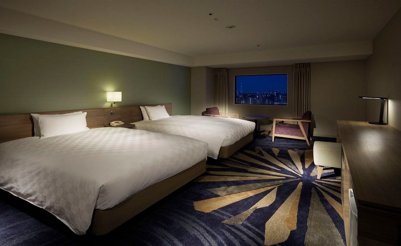 カップルやご友人同士で気軽にご利用いただけるツインルーム。見晴らしのよい景色もパノラマフロアならではのもの。