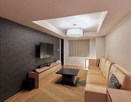 ゆとりのあるサニタリースペースと眺めのよいリビング空間が快適なホテルステイをお届けいたします。特徴的なベッドルームは、ファミリーや女子会でのご利用にもおすすめです。3~4名さまでご利用いただけます。
