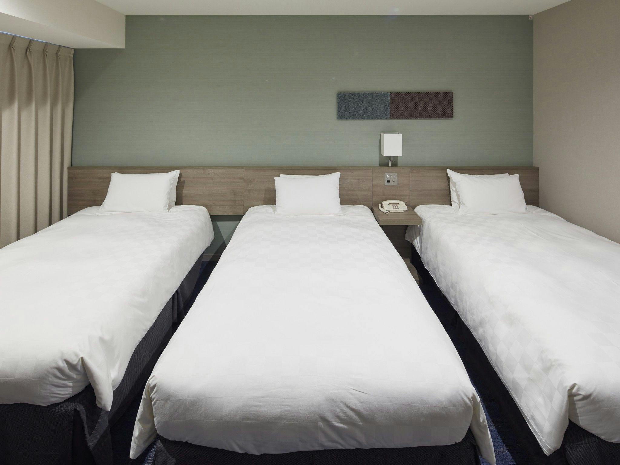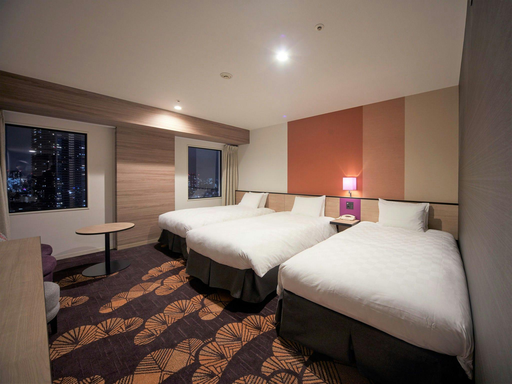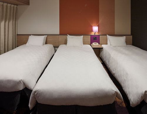 33~35階にございます。120cm幅のベッドが3台入っており、3名様でもゆったりとお過ごしいただけます。お部屋はベッドルームとリビングルームに分かれており、広々としたお部屋でございます。
