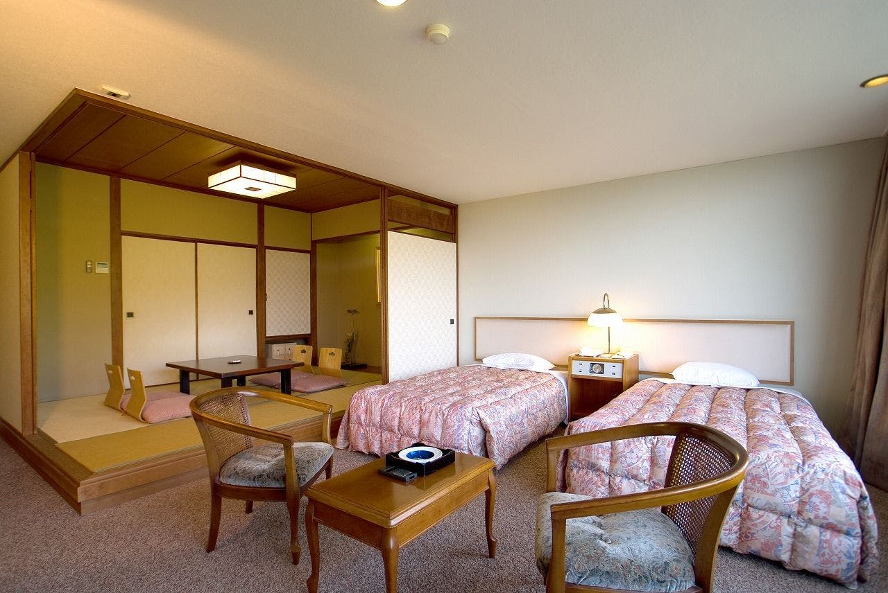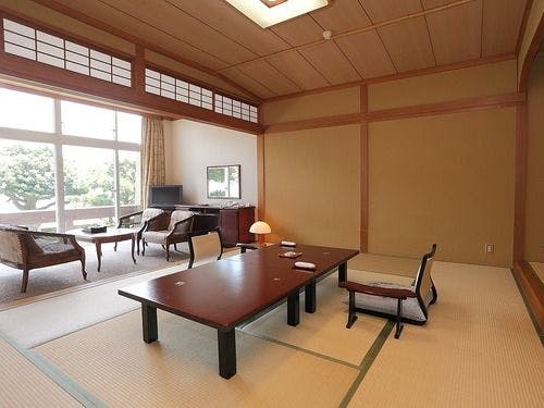 松の庭園と青い輝きの海原を眺める離宮のお部屋は、ゆったりとしたくつろぎの空間です。