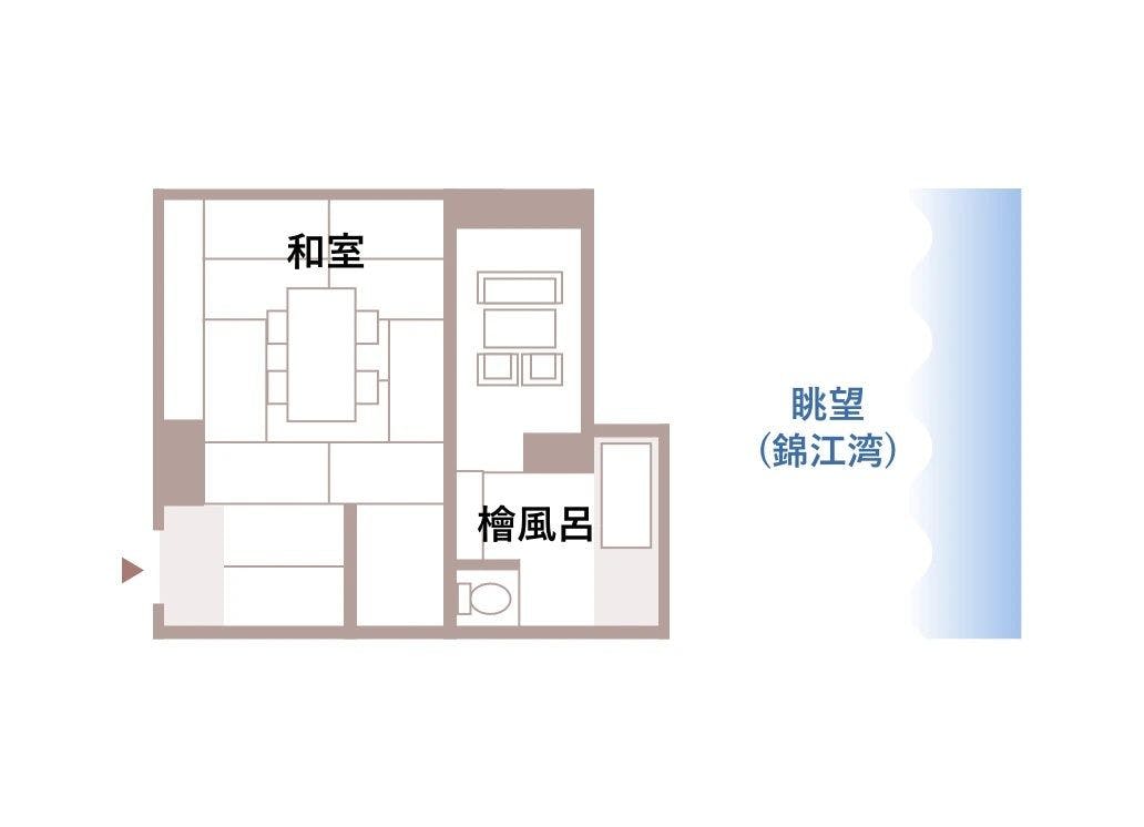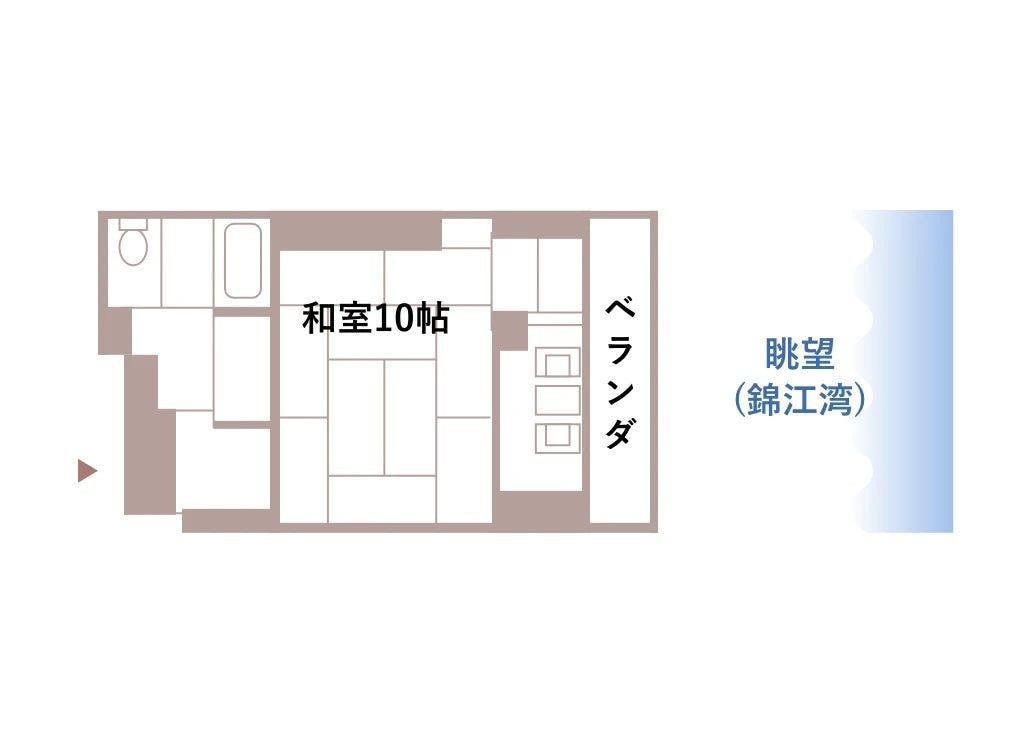 寛ぎの海側和室10帖で全室温泉付き。建物3階建ての低層階ながら、窓の外は南国情緒あふれるアコウの大木や七色に変化すると詠われた錦江湾が広がっています。お部屋前の通路窓からは珍しいリュウビンタイも見ることができます。