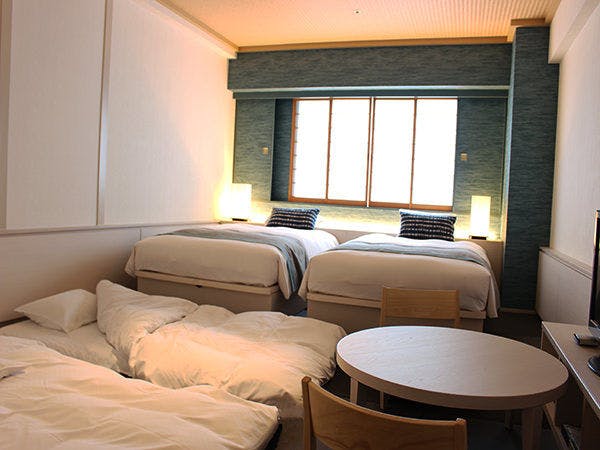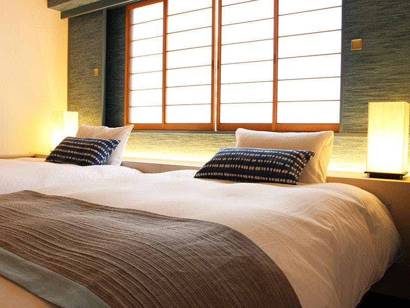 琉球畳をあしらい、ベッド2台をご用意した和室。