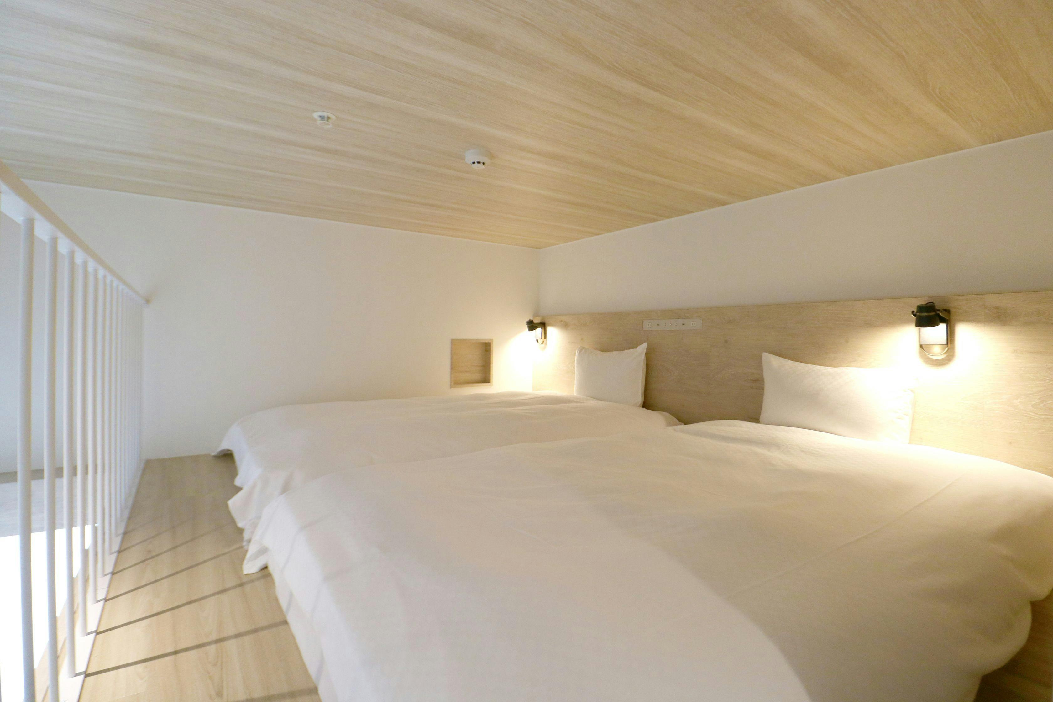 ツインベッドに加えて、メゾネットにも大きなベッドマットをご用意しております。