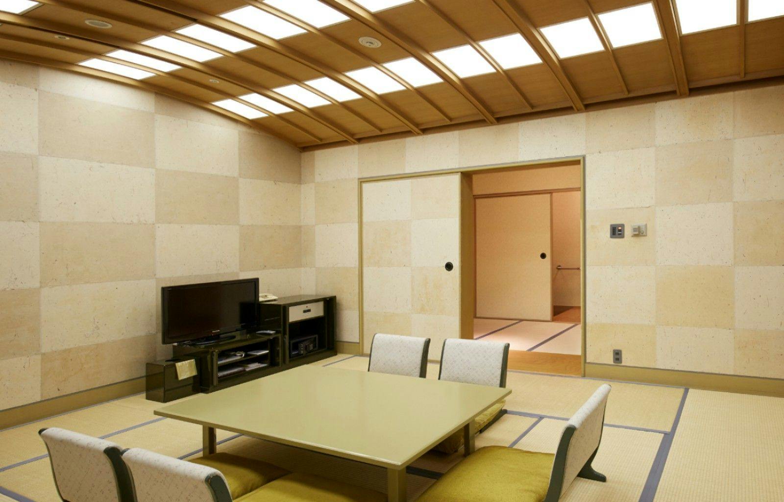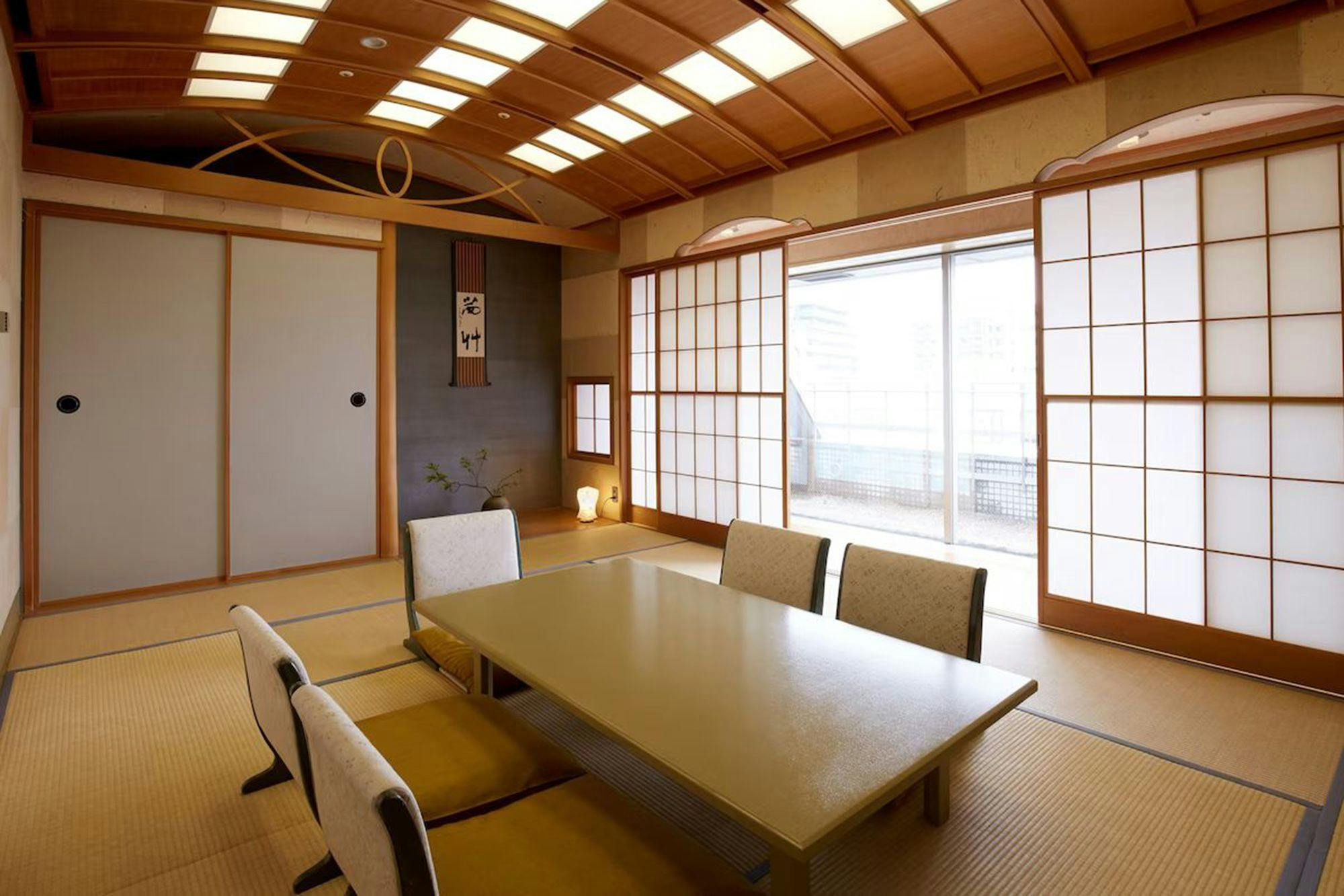 モダンなデザインの和室となっております。和室はそれぞれ内装が違っております。会食でもご利用いただけます。Wi-Fi接続サービス全室無料