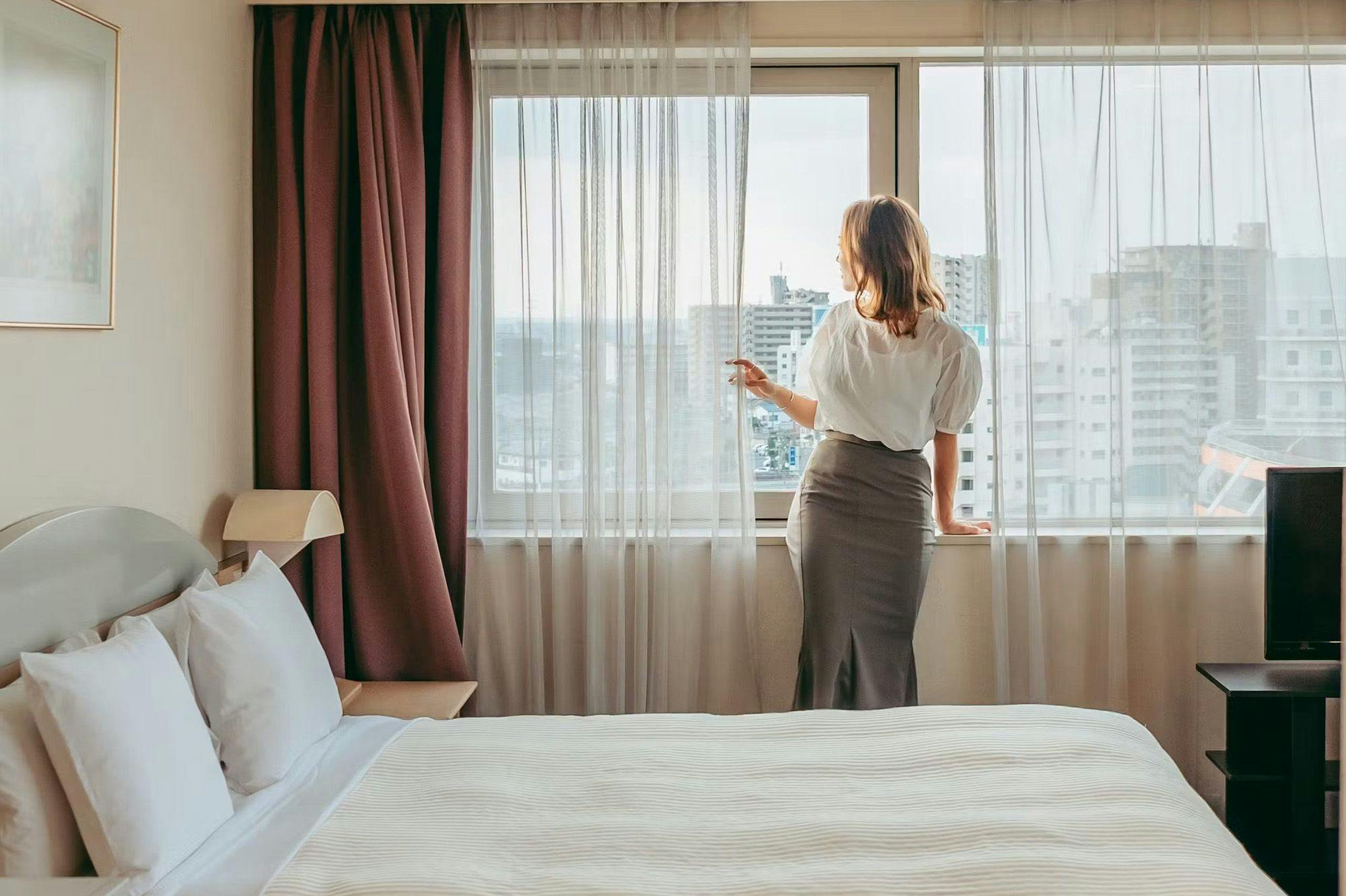 明るい陽光が入り、落ち着いたブラウンで統一されており、ビジネスや観光にお薦めです。Wi-Fi接続サービス全室無料