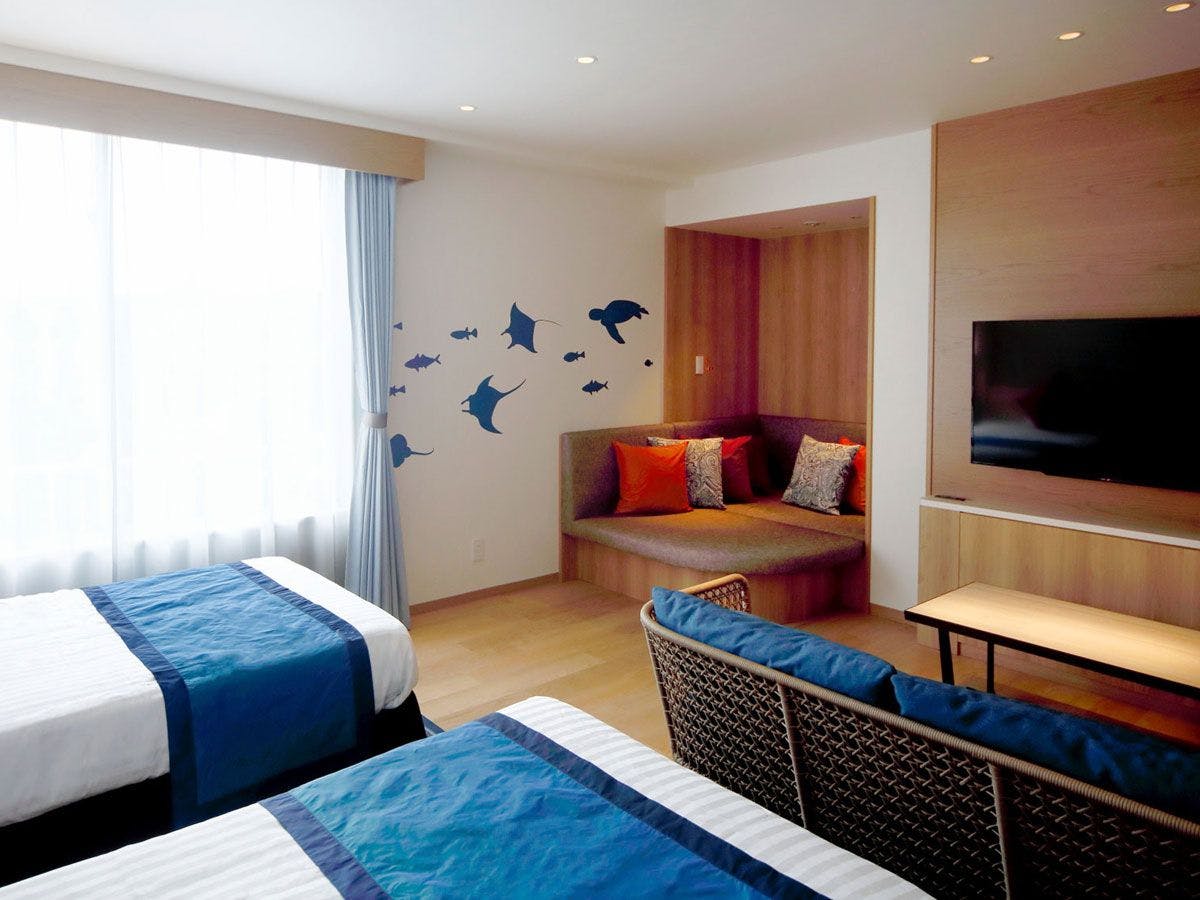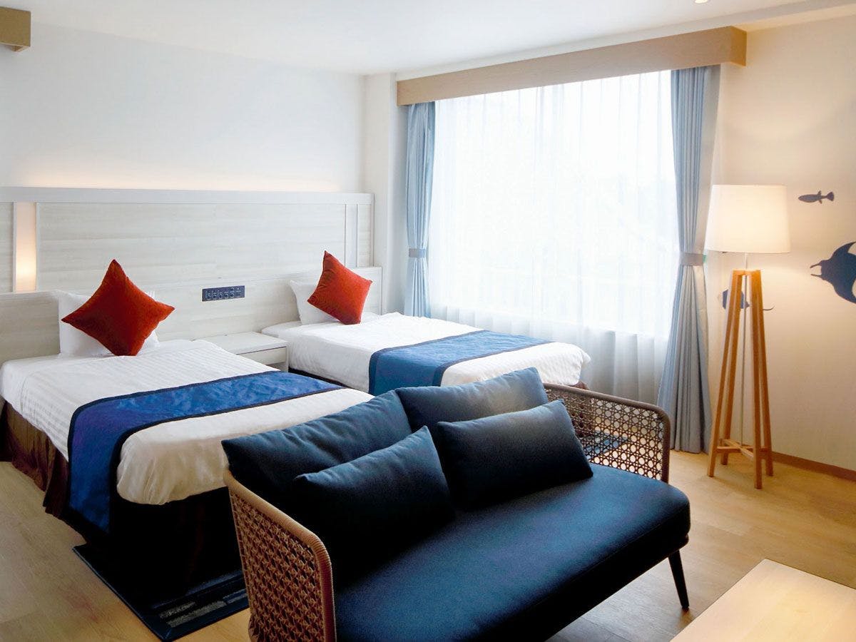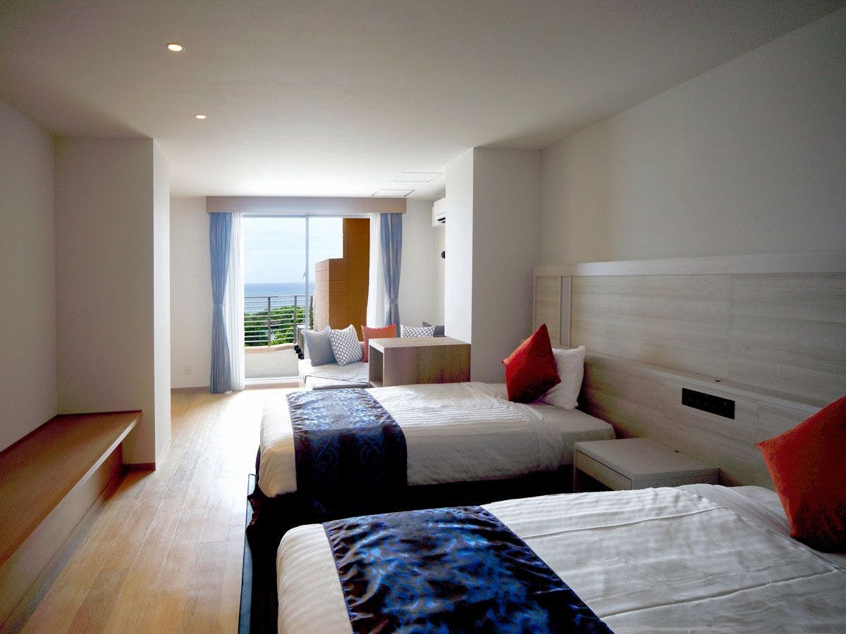 宮古島の自然をイメージした開放感のあるスタンダードツイン1階のお部屋となります。