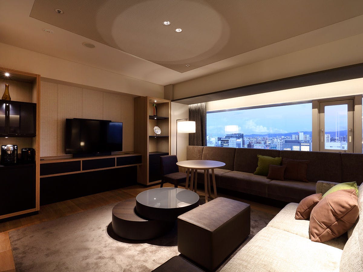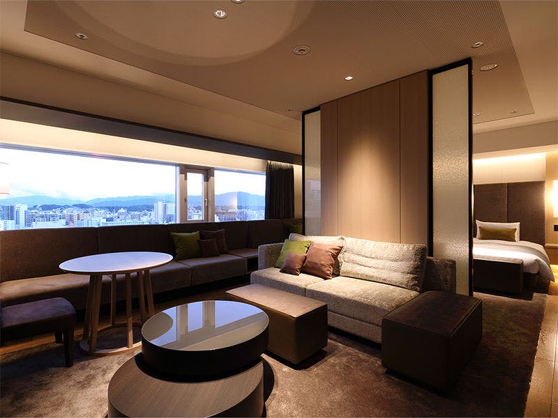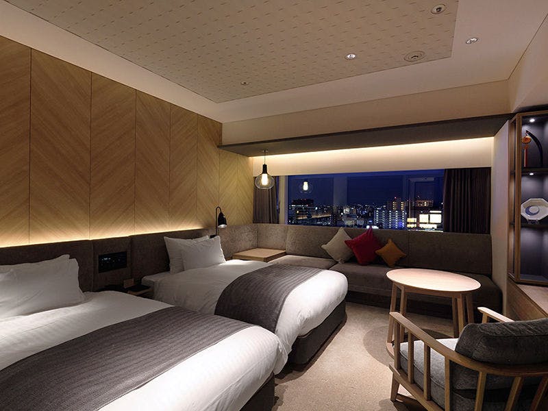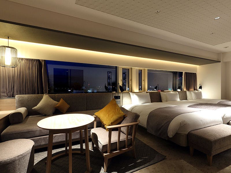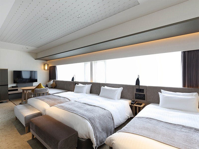41.8平米のデラックストリプルルームにデイベッド(幅100cm長さ195cm)を配した4名様ルーム。