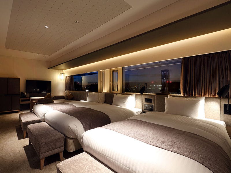 41.8平米のお部屋にシモンズ社製の幅120cmベッド×3台を配した3名様ルーム。