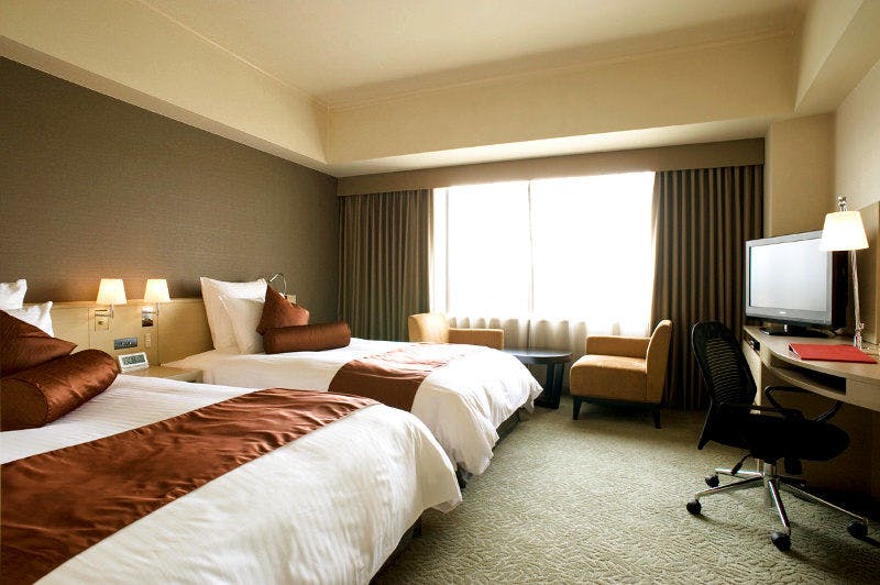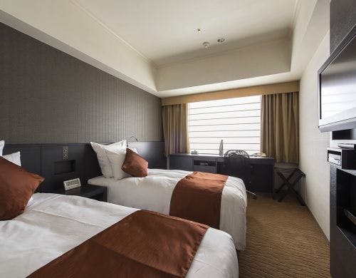 スタンダードツインは、19.5平米・90cm幅のシングルベッドが2台からなる機能的な客室です。「金沢エレガンス」をコンセプトにデザインされたモダンな空間。ベッドには寝心地に定評のあるシモンズ社製のマットレスを採用。オリジナル快眠プログラム「スリープ・アドバンテージ」とともに、快適な睡眠をサポートいたします。※客室内の家具やレイアウトは異なる場合がございます。