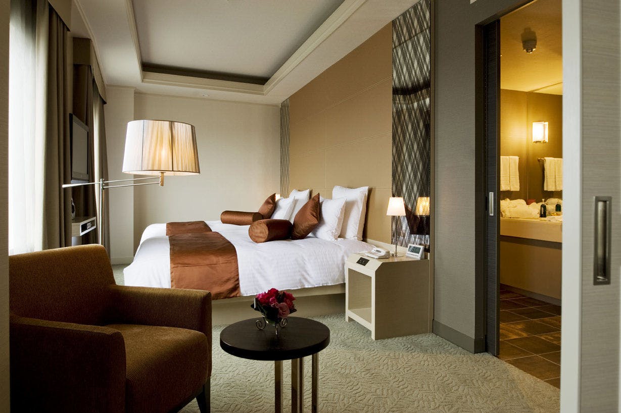 モダンなクラス感あるインテリアに包まれた落ち着いた空間。こだわりのリネン類など快適なホテルライフをご提供いたします。※客室内の家具やレイアウトは異なる場合がございます。