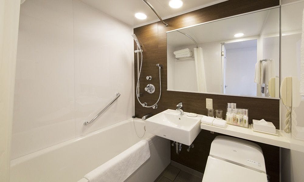 31平米以上のゆとりあるお部屋の広さと、ご夫婦やご友人とのご旅行におすすめの120cm幅のベッドが2台、機能的で清潔感ただようバスルームを備えております。
