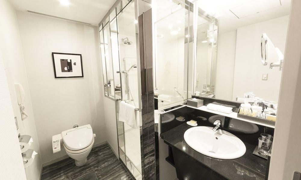 20平米以上のゆとりあるお部屋の広さと、長期滞在のお一人様やカップルにおすすめの140cm幅のセミダブルベッド、機能的で清潔感ただようバスルームを備えております。