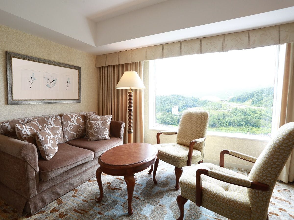 ゆとりあるスペース、自然の優しさとエレガントな雰囲気を漂わせたインテリアでリゾートライフの素晴らしさを実感していただけるお部屋です。晴れた日にはすべてのお部屋から北アルプスが一望できます。