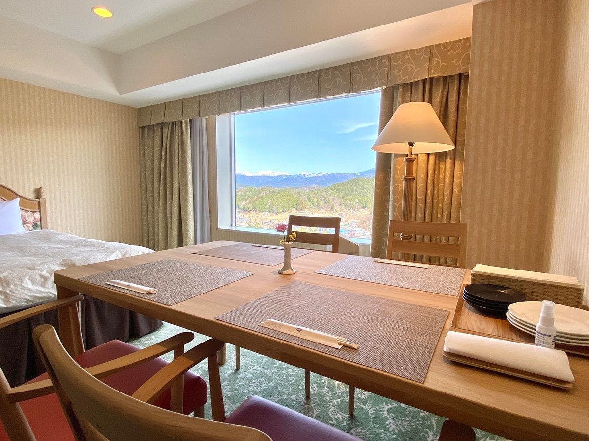純和風でありながらも、ヨーロピアンエレガンスが味わえる贅沢な空間は、居ながらにして高山の自然が満喫できます。