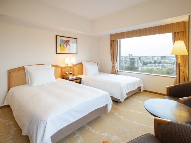機能性と快適さを兼ね備えたリーズナブルなツインルーム。あたたかい色調のインテリアは旅で疲れた心をさりげなく癒してくれる。