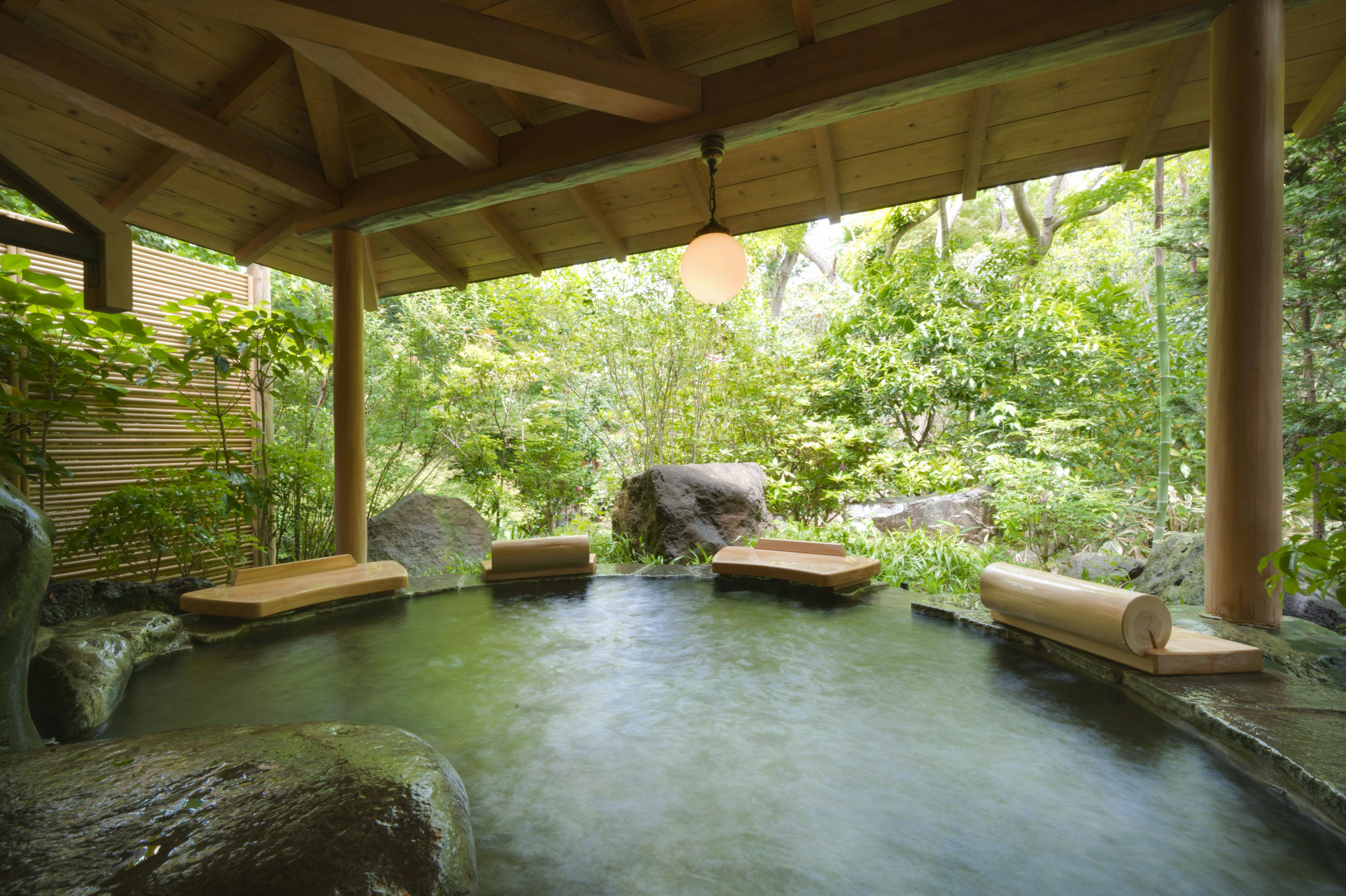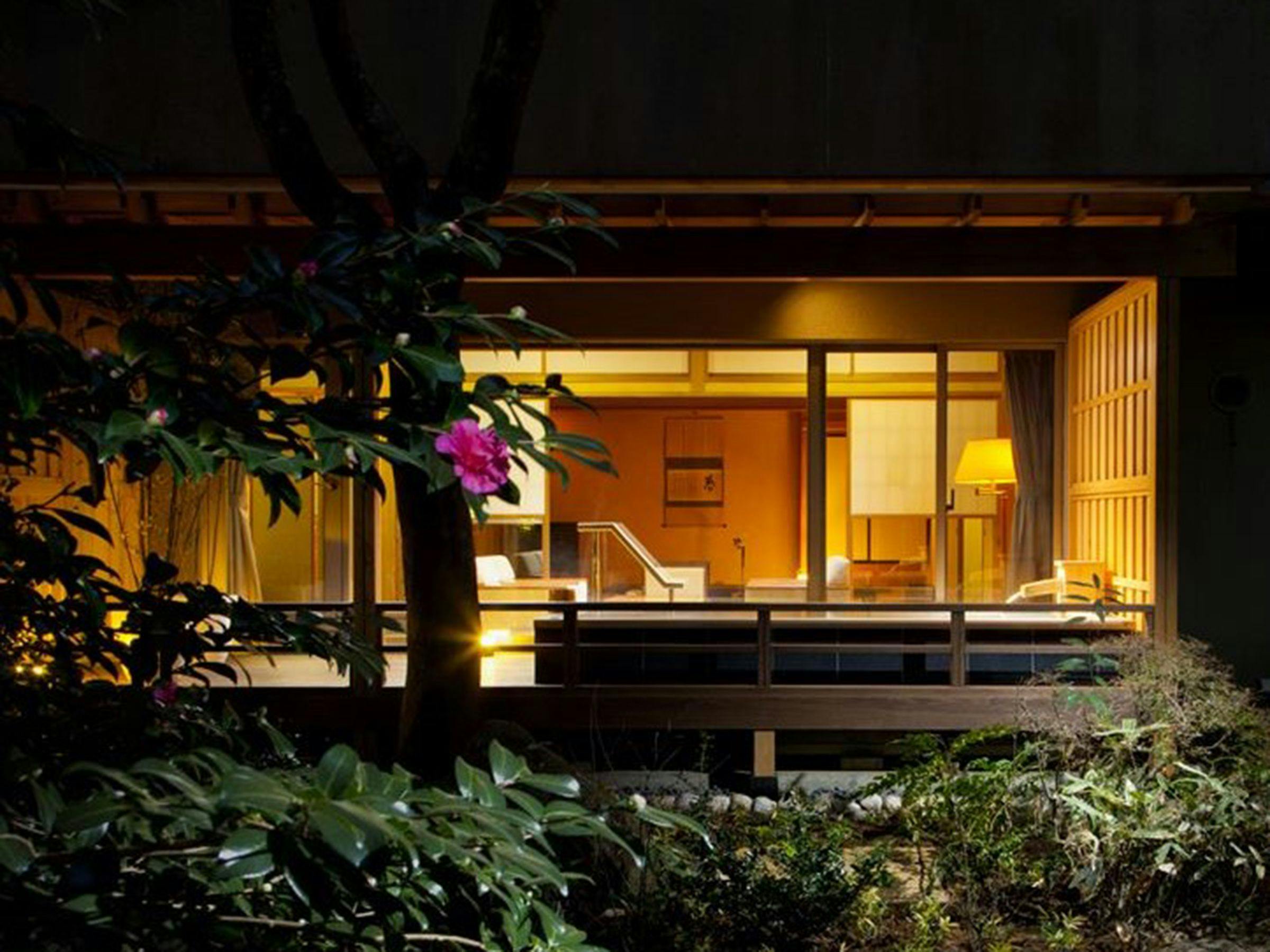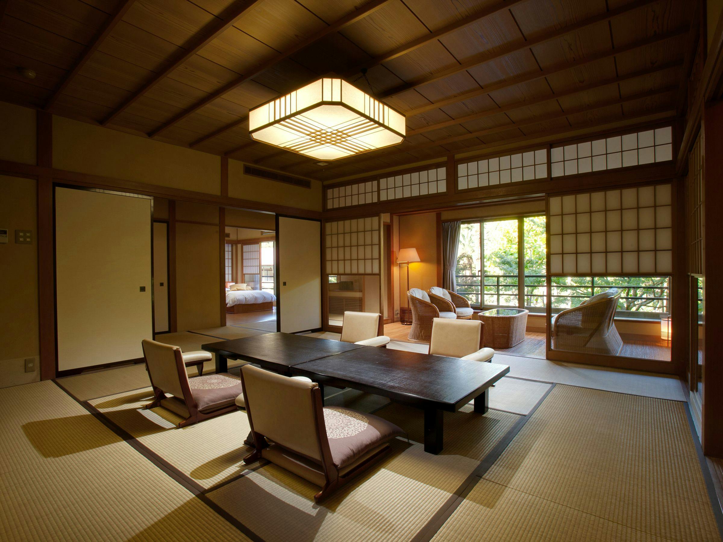 竹林と池をかたわらに1室50坪余の数奇屋造りに庭園を望む露天風呂が付いた貴賓室。伊豆の旬の会席料理も是非ご賞味ください。