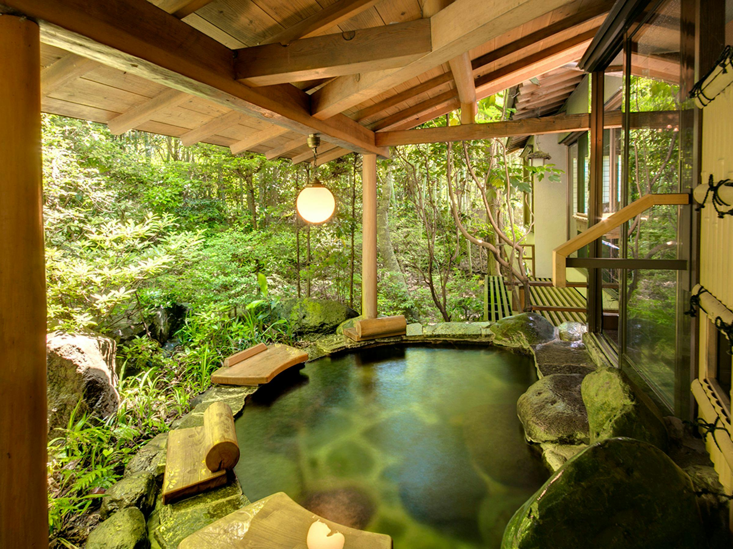 美しい自然の中、川のほとりに建ち、和風旅館でありながら、古来ヨーロッパのサウナ「テルマリウム」もお楽しみ頂けます。100%源泉掛流しです。