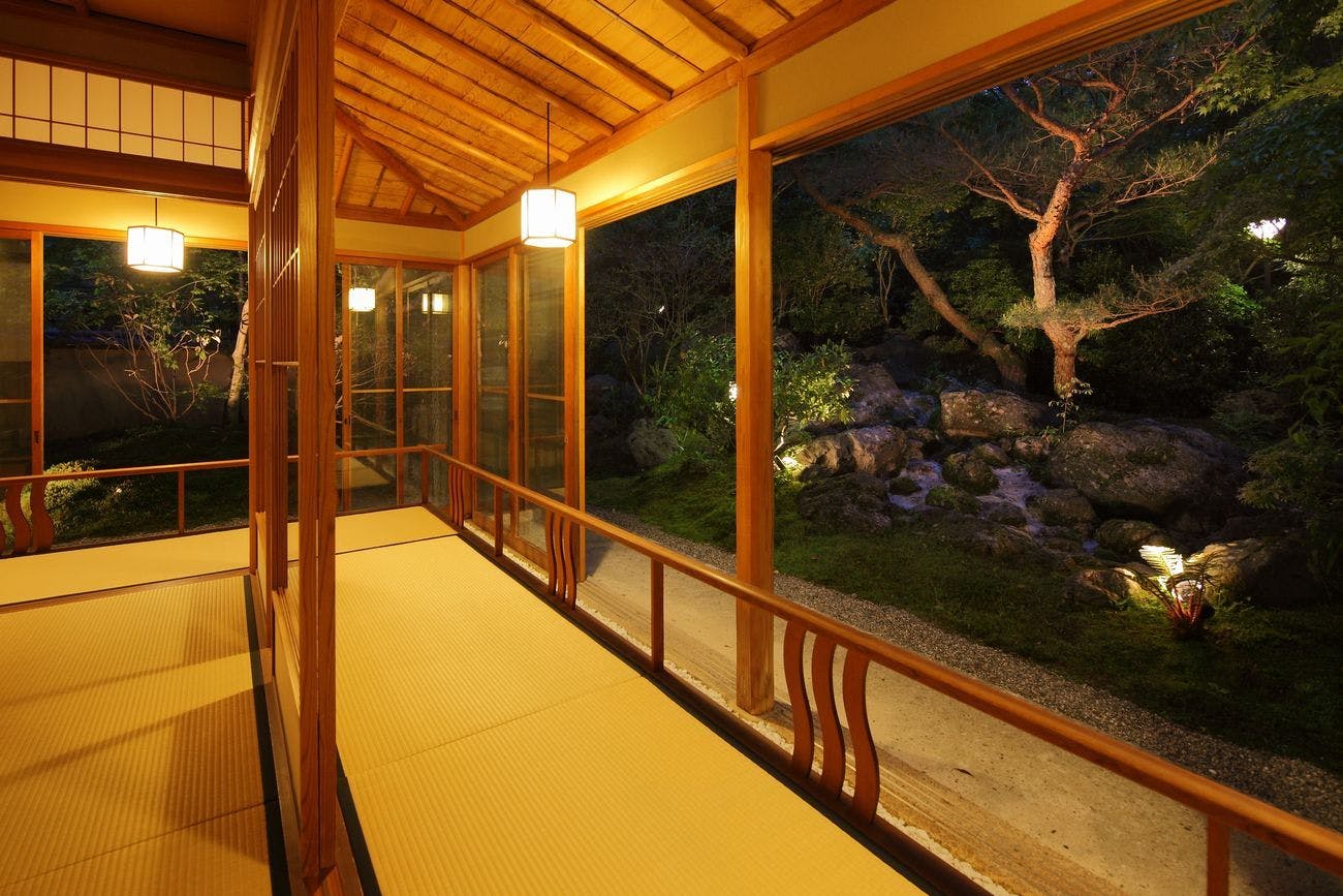 雄大なる雲仙のふところに抱かれる、数寄屋造りの風韻の館。茶の心をつくししつらえた調度が、至福のくつろぎをお約束いたします。
