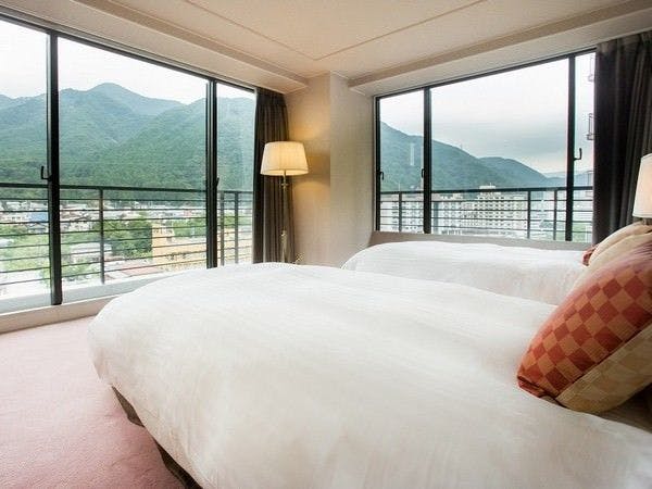 鬼怒川渓流側に位置する、過ごしやすい洋室に書院造りの和室をプラスしたお部屋。