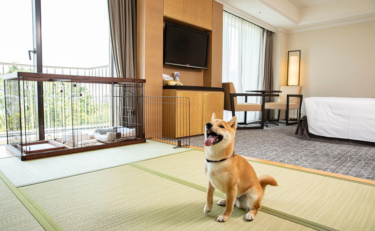 こちらのお部屋では、大切な家族の一員のワンちゃんと一緒にホテルステイを楽しむことができるます。