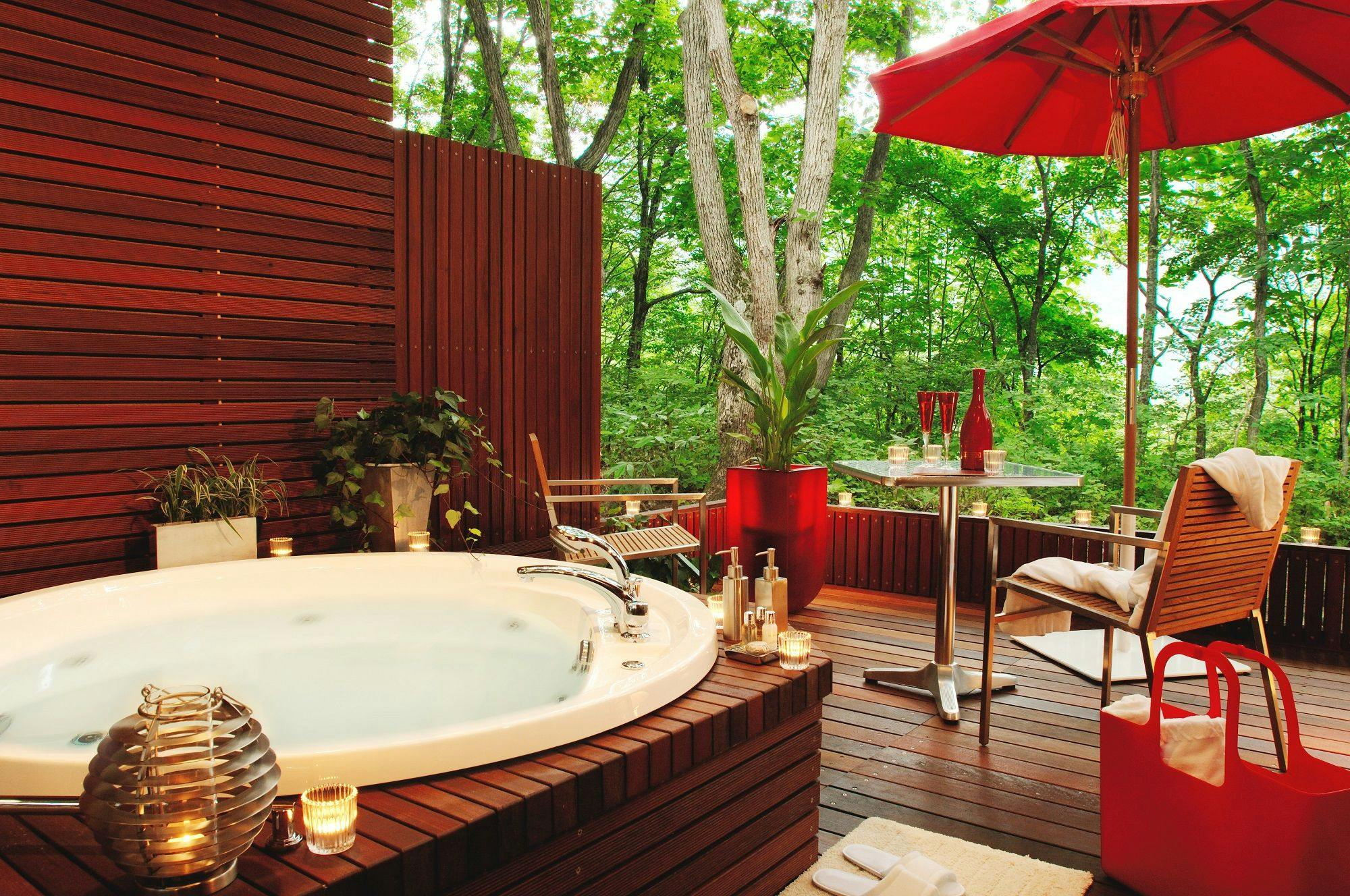 露天ジャクジーバスとテラスで究極の森林浴をご堪能ください。